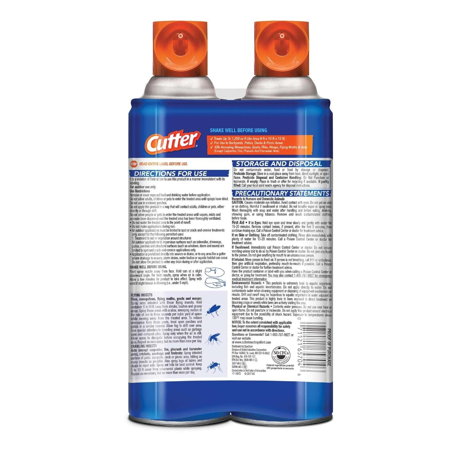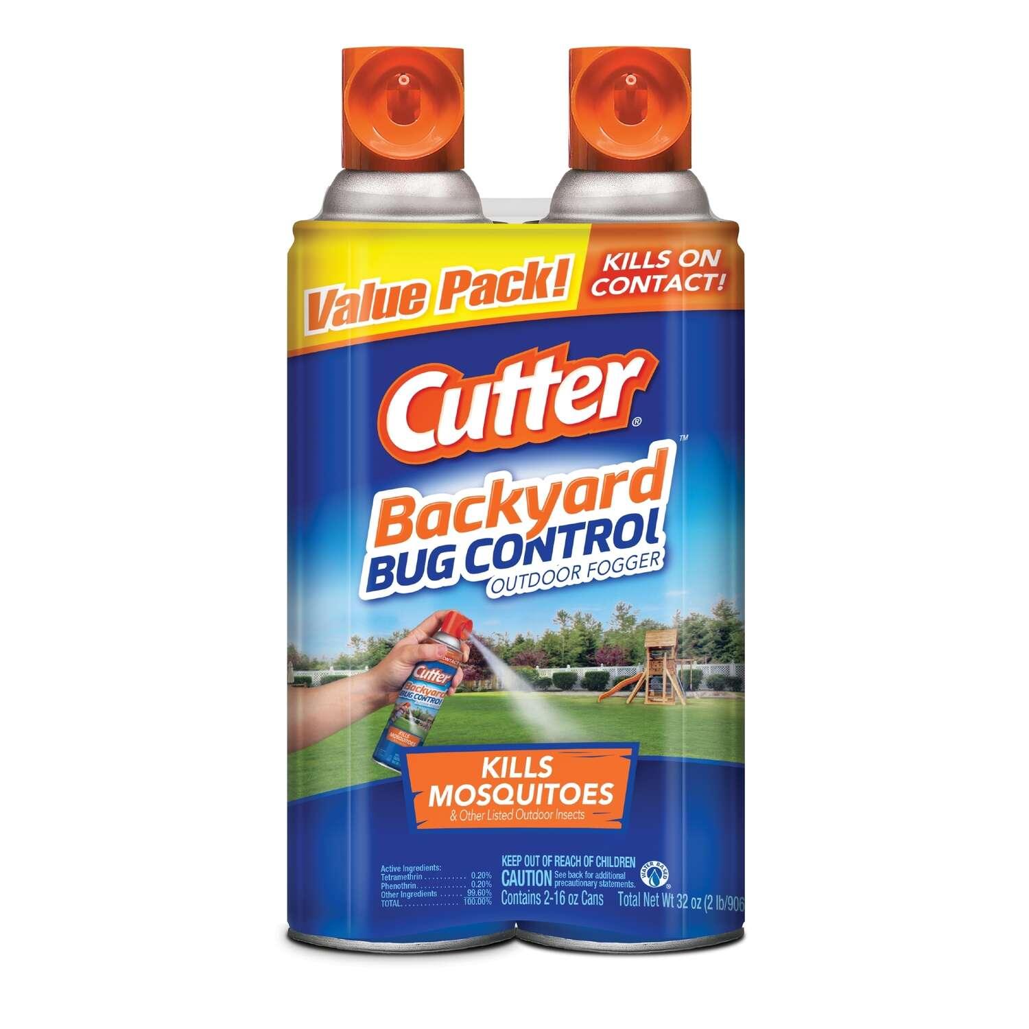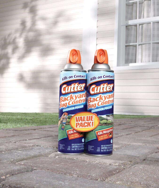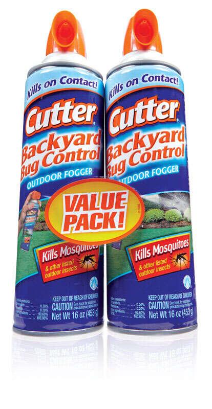 Cutter Backyard Bug Control outdoor fogger repels and kills mosquitoes, flies, gnats, ants and other insects on contact and for up to 4 weeks. The water-based formula continues working even after it rains. Prepare for your next outdoor event with this fast-acting bug killer and repellent.