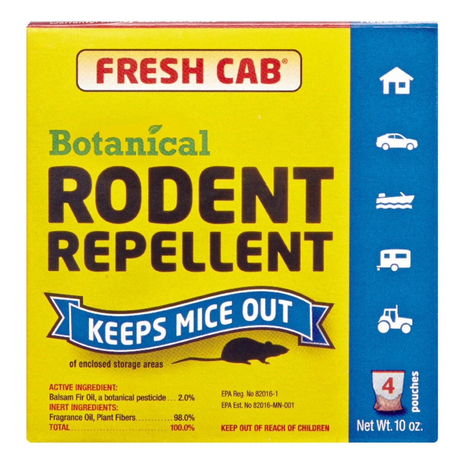 Fresh Cab Trust the Original Natural Rodent Repellent, Why Fresh Cab is Effective Independent 30 and 90 day lab studies prove the active botanical ingredient in Fresh Cab balsam fir oil repels mice effectively. Fresh Cab in Convenient: Fresh Cab is rated #1 Ease of Use by the National Home Gardening Club. Simply place Fresh Cab pouches in rodent-prone areas and forget them. Each pouch is individually wrapped for freshness until use. Fresh Cab Guaranteed: We're so confident that Fresh Cab will be effective even in rodent-infested areas that we offer a 100% money-back guarantee if customers aren't satisfied. Fresh Cab is EPA Certified: Fresh Cab is the first and only botanical rodent repellent to meet Federal EPA standards for professional use and be safe enough to use in and around the home where kids and pets may frequent/play. Fresh Cab Buys come back, Fresh Cab is so effective that 90% of buyers including farmers and pest management pros, come back for more. Season after Season year after year. Fresh Cab keeps driving shoppers to your store.