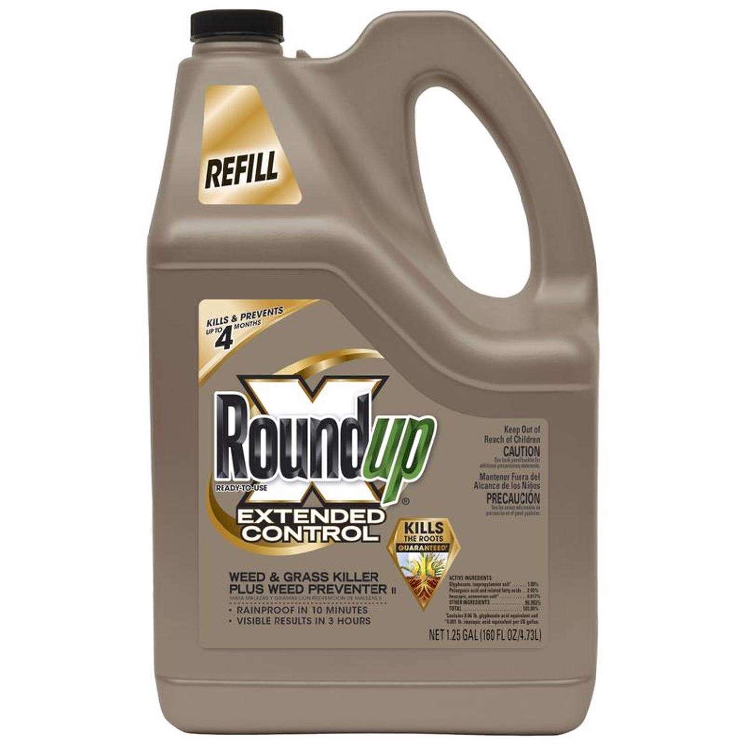 The dual-action formula of Roundup Ready-To-Use Extended Control Weed & Grass Killer Plus Weed Preventer II refill kills existing weeds and prevents new ones from growing for up to 4 months and it kills them down to the root, guaranteed! (Consumer Guarantee: If for any reason you are not satisfied after using this product, simply send us original proof of purchase, and we will refund the purchase price.) Plus, the Roundup Extended Control can be used on driveways, sidewalks, patios, along fences, curbs, retaining walls and edges of lawns, as well as on decorative rock or gravel areas. This is the easy and economical way to refill any Roundup Extended Control Ready-to-Use applicator. Rainproof in 10 minutes with visible results in 3 hours, Roundup works Fast.