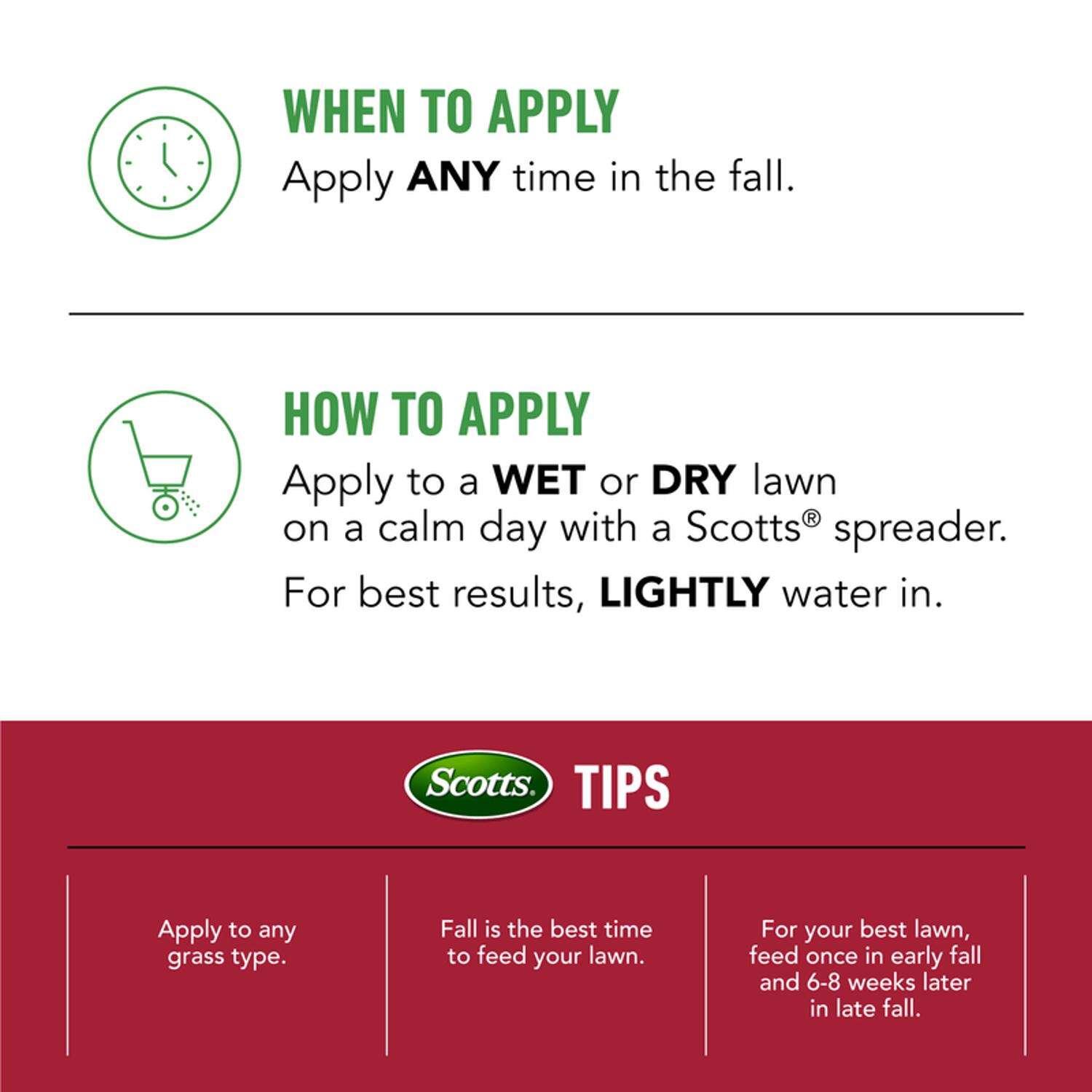 Fall is the best time to feed with Scotts Turf Builder WinterGuard Fall Lawn Food. It builds strong, deep roots for a better lawn next spring. The lawn food is formulated to deliver the nutrients lawns need in the fall to repair damage from the heat, drought and activity of the summer, ensuring stronger grass in the spring.