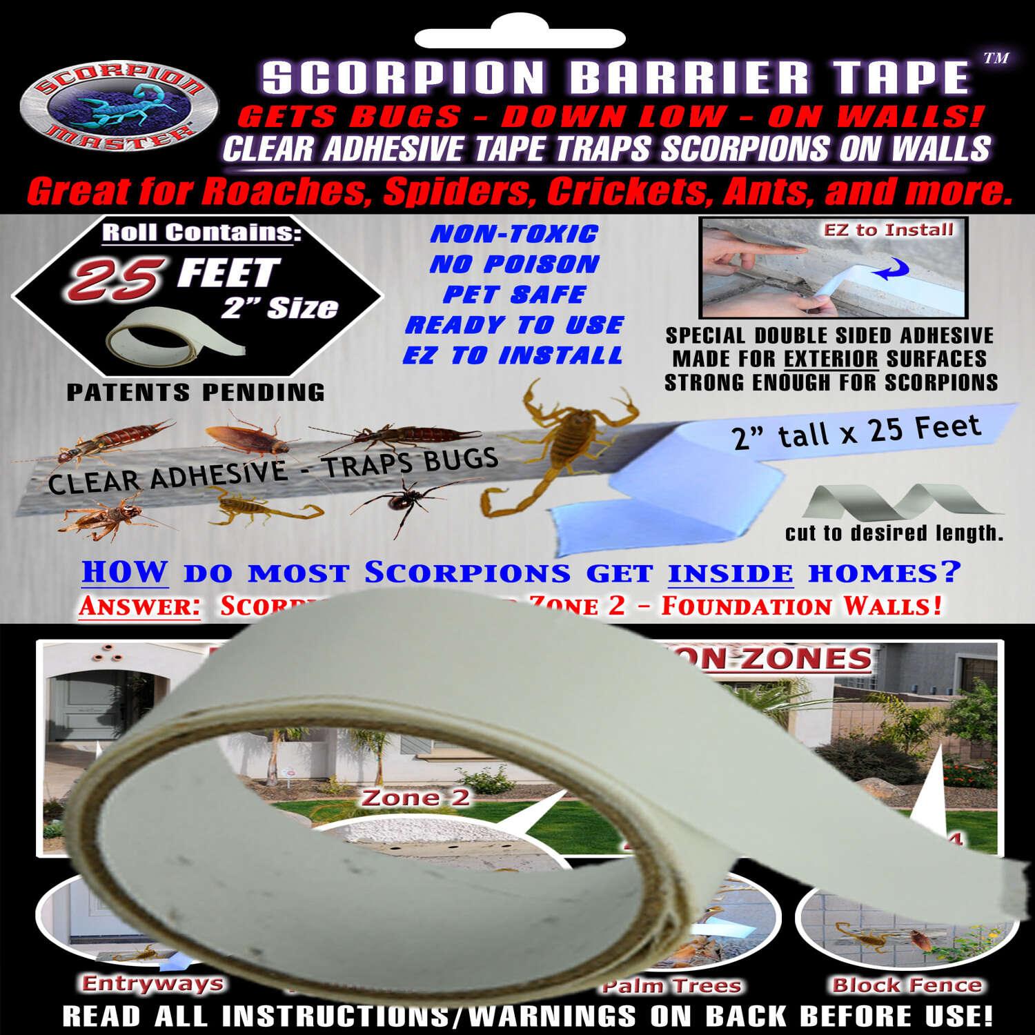 Scorpion barrier tape lets you keep a sticky barrier around your home, windows, trees and much more! bugs can not get past this super double sided sticky tape.