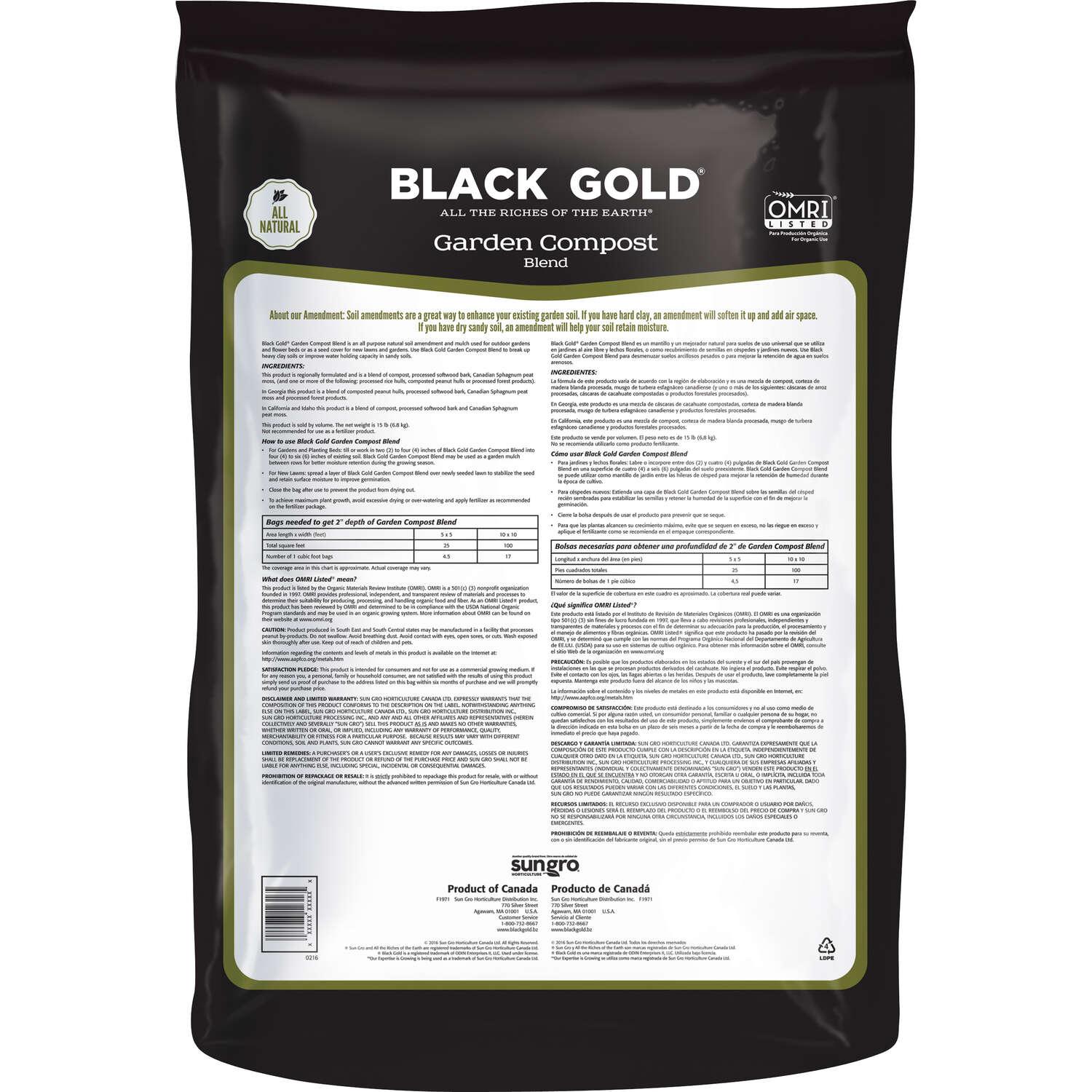 Black Gold Compost Blend will improve or garden's soil as well as serving as an above ground mulch. A blend of compost, bark, Canadian sphagnum peat moss and forest products will improve the structure of your garden soil helping to produce vigorous plants.
