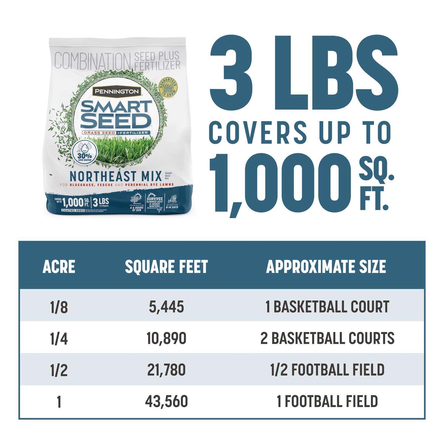 In the Northeast, your lawn must withstand cold winters and hot, humid summers. Pennington Smart Seed Northeast Mix consists of a premium mix of Kentucky Bluegrass, Perennial Ryegrass and Fine Fescues that are specifically designed to flourish in this climate. Smart Seed Northeast grass seed mix is disease resistant and drought tolerant and contains just the right amount of fertilizer to help your lawn succeed. In areas of your lawn that receive 4 to 6 hours of sun daily, plant this grass seed mix in the early spring or early fall and see results in 8 to 14 days. A 3-pound bag covers up to 1,000 square feet for overseeding an existing lawn and 330 square feet for starting a new lawn from scratch. What makes Smart Seed smart. It’s our industry-leading innovation. Pennington's NexGen Turf Research is the largest private grass seed research facility in the United States. We lead the industry in developing top-performing, water-conserving, sustainable seed. Once established, our purebred, drought-tolerant Smart Seed grass requires up to 30 percent less water than ordinary grass seed. That's year after year, for the life of your lawn. Plus, our advanced, fertilizer-enhanced seed coat technology speeds establishment and promotes greener grass. Born from Pennington innovation and NexGen breeding and research, Smart Seed brings you better seed, better sustainability and better results.