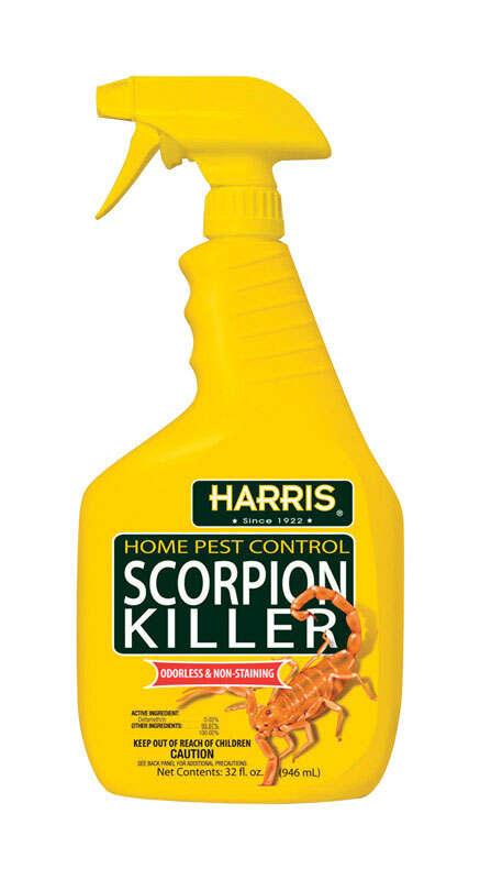 Harris Scorpion Killer is a water based, odorless and non staining product that will kill scorpions and other types of insects after the spray dries.