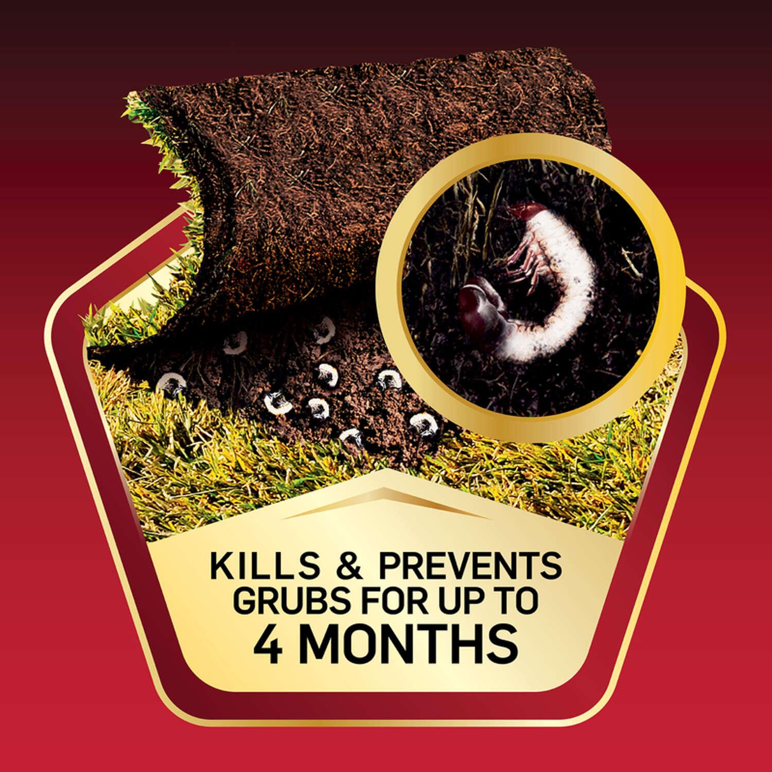 • One application in the spring or early summer kills and prevents grubs and armyworms for 4 months
