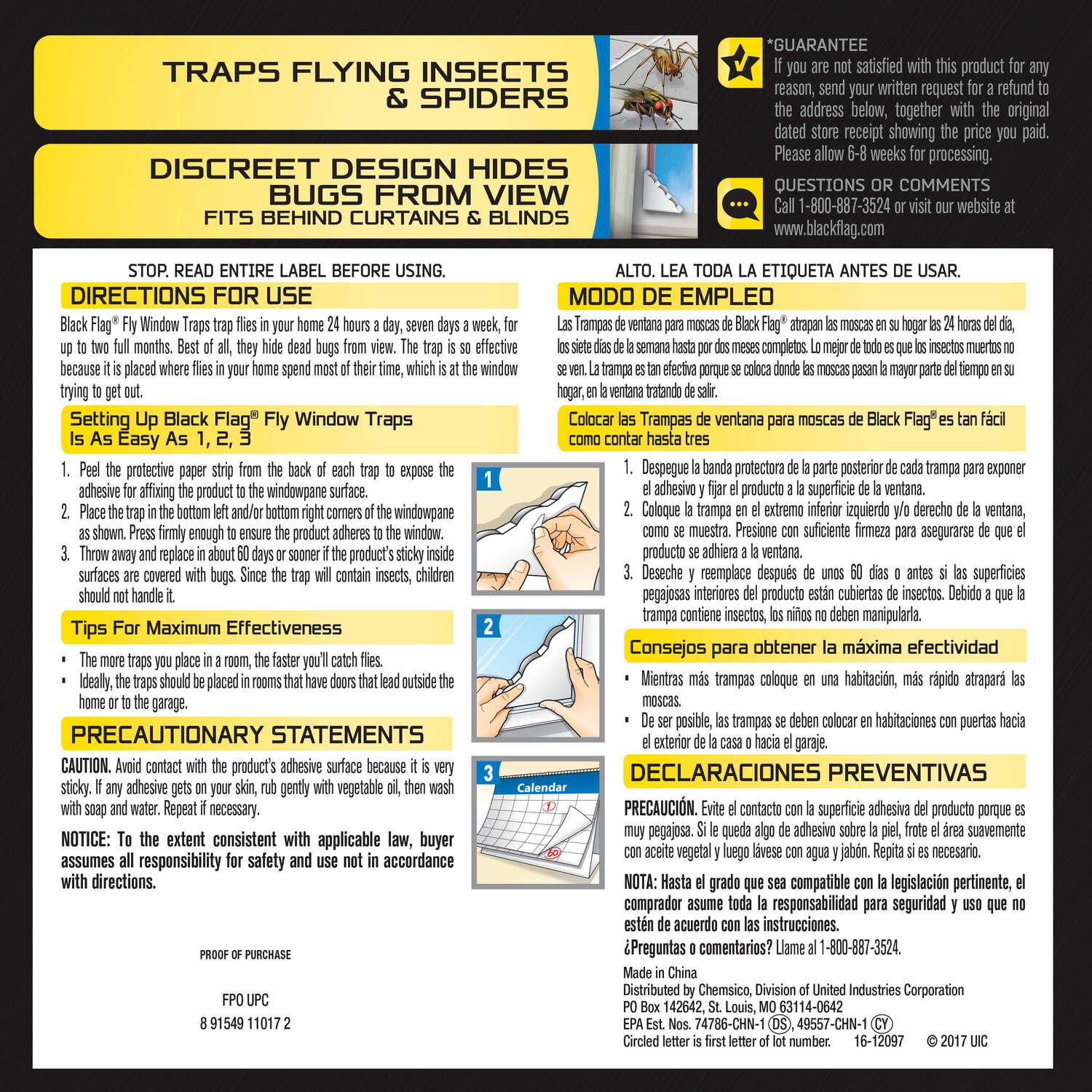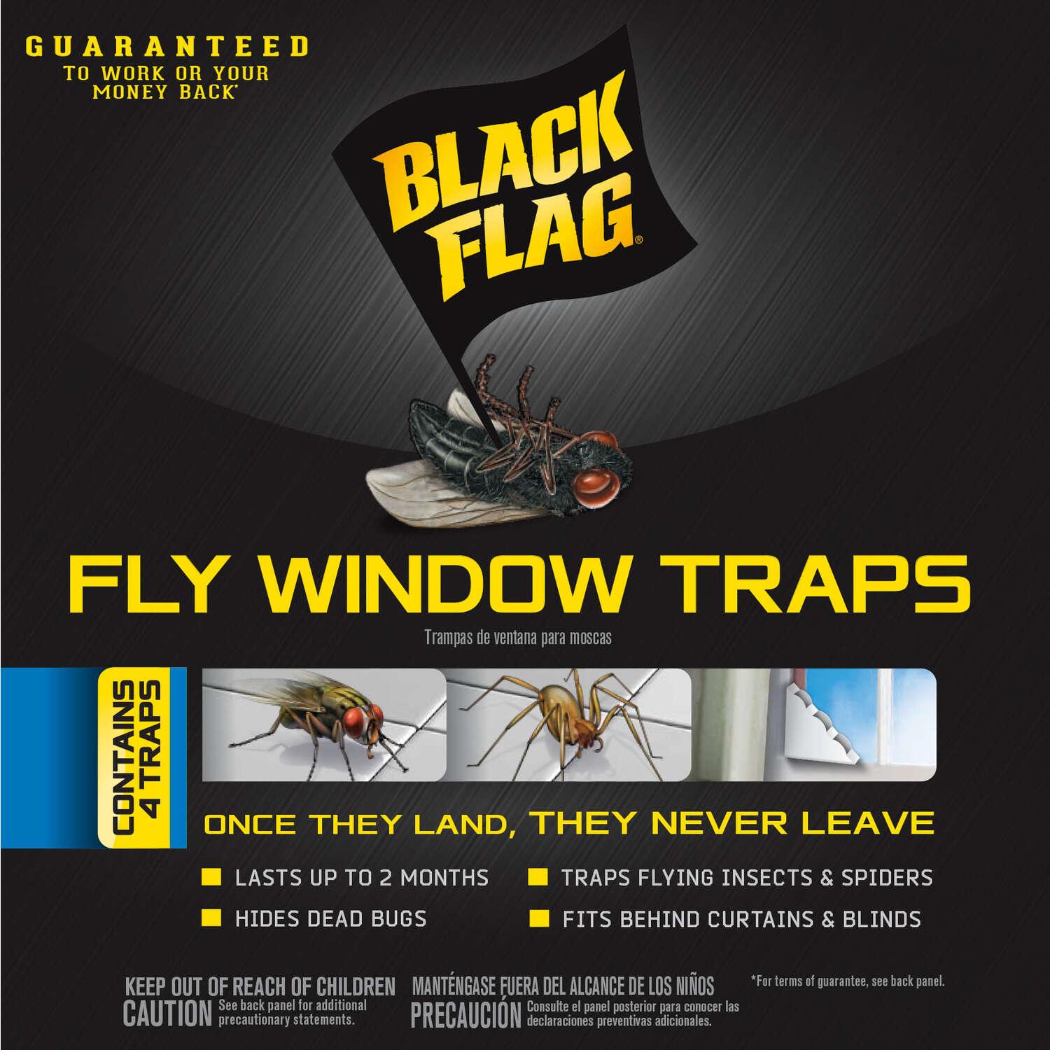 Black Flag Fly Window Traps trap flies in your home 24 hours a day, seven days a week, for up to two full months. Best of all, they hide dead bugs from view. The trap is so effective because it is placed where flies in your home spend most of their time, which is at the window trying to get out.