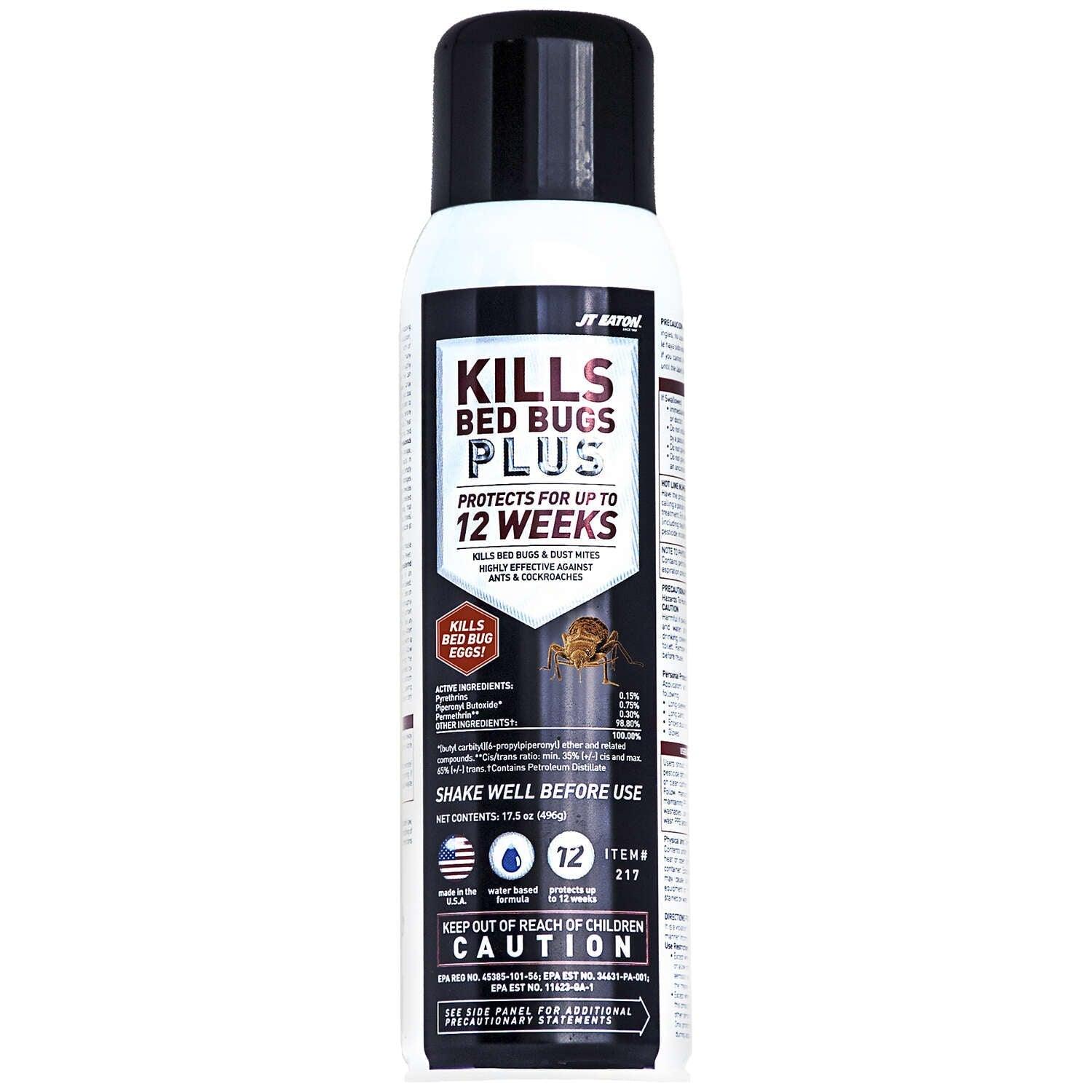 Kills Bed Bugs Plus 17.5 Oz. Aerosol Water Based Insect Spray uses active ingredients Pyrethrins (0.15 percent), Pipronyl butoxide (0.75 percent) and permethrin (0.30 percent). The spray is applied directly to the surface that requires protection. The spray can be used as a pest removal or a pest deterrent.