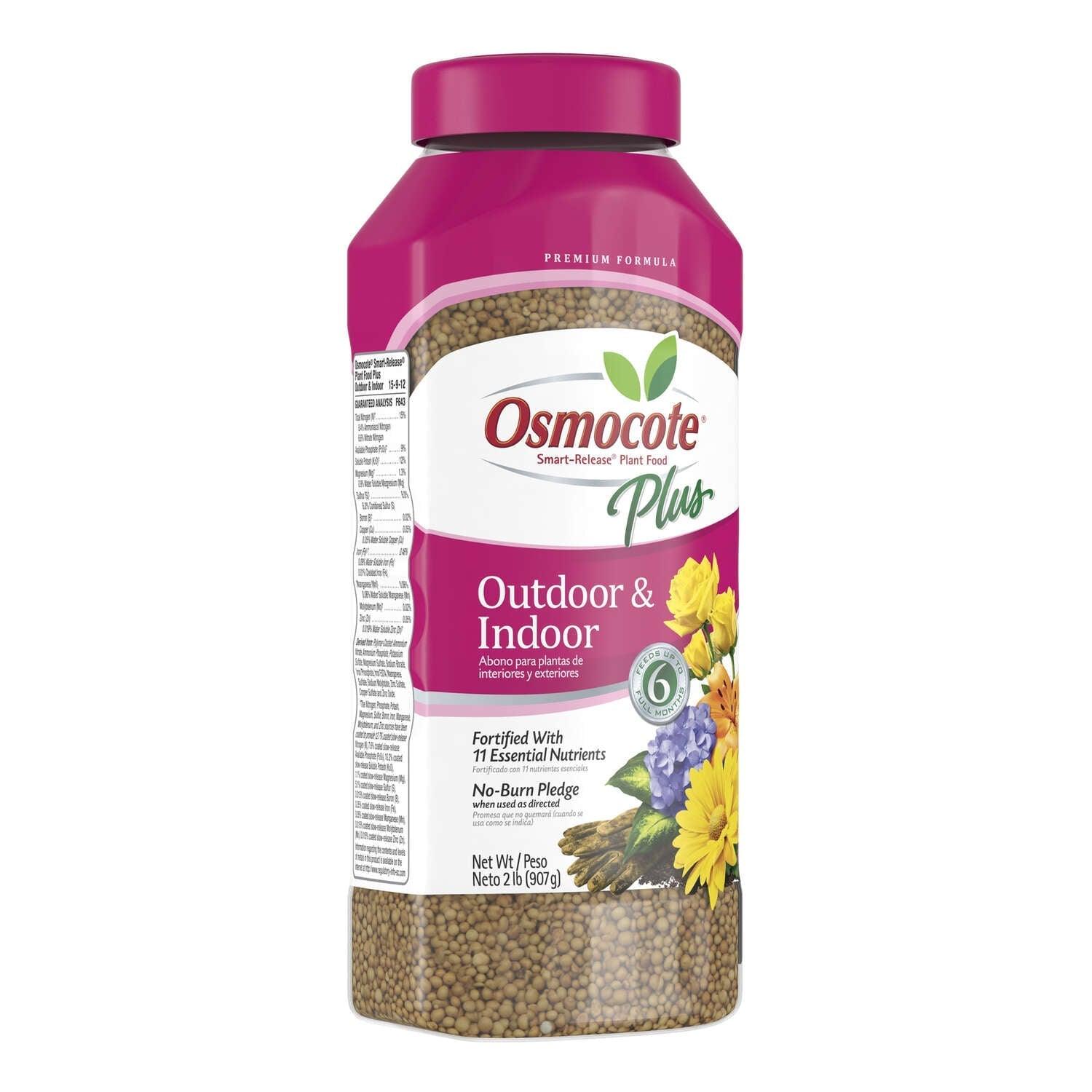 Feed indoor and outdoor potted plants for up to a full 6 months with Osmocote Smart-Release plant food plus outdoor and indoor. This is the best formula and it is fortified with 11 essential nutrients. It works with virtually all plant varieties, in all growing conditions. Plus, we offer no-burn pledge when you use Osmocote as directed.
