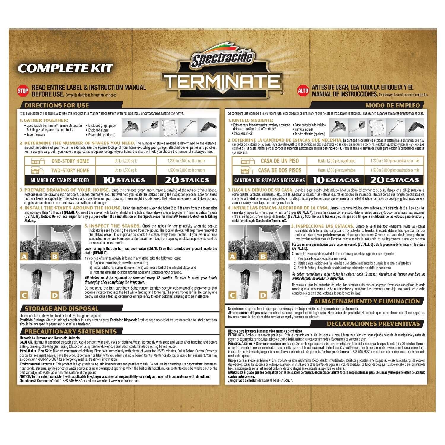 Spectracide Terminate Termite Detection & Killing Stakes2 are do-it-yourself termite bait stakes available to consumers. The stakes have a pop-up and an easy-to-find locator shields that make it easier for regular inspection.