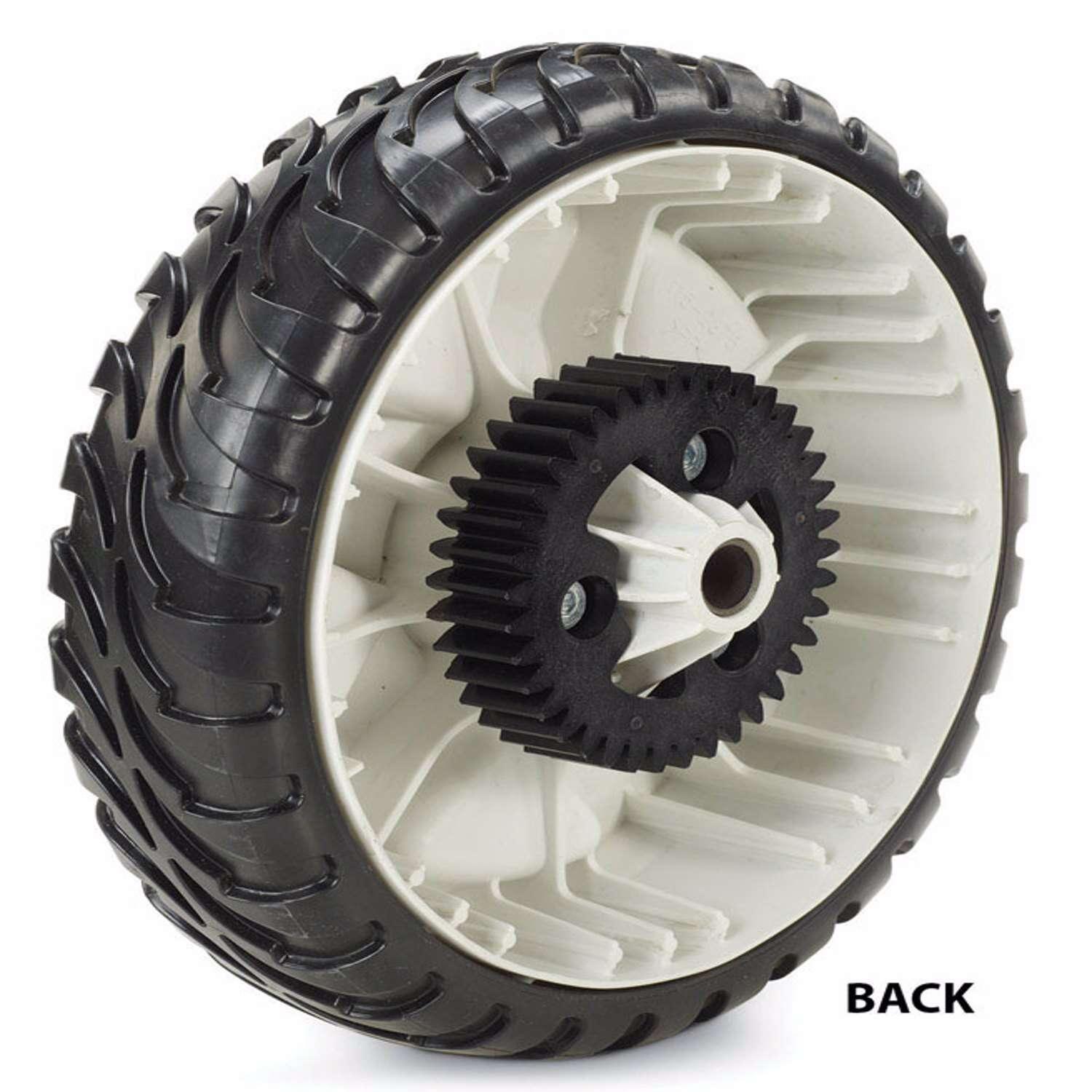 The Toro brand has long been synonymous with quality and Toro's quality standards begin with high quality components, like this wheel assembly. With a wheel hub made of durable polypropylene, this 11 inch wheel assembly is a long-lasting and highly functional replacement for 22 inch recycler and smart stow models. This wheel assembly offers a capped tire with a stylish 5-spoke hub and an aggressive tread to minimize slip.