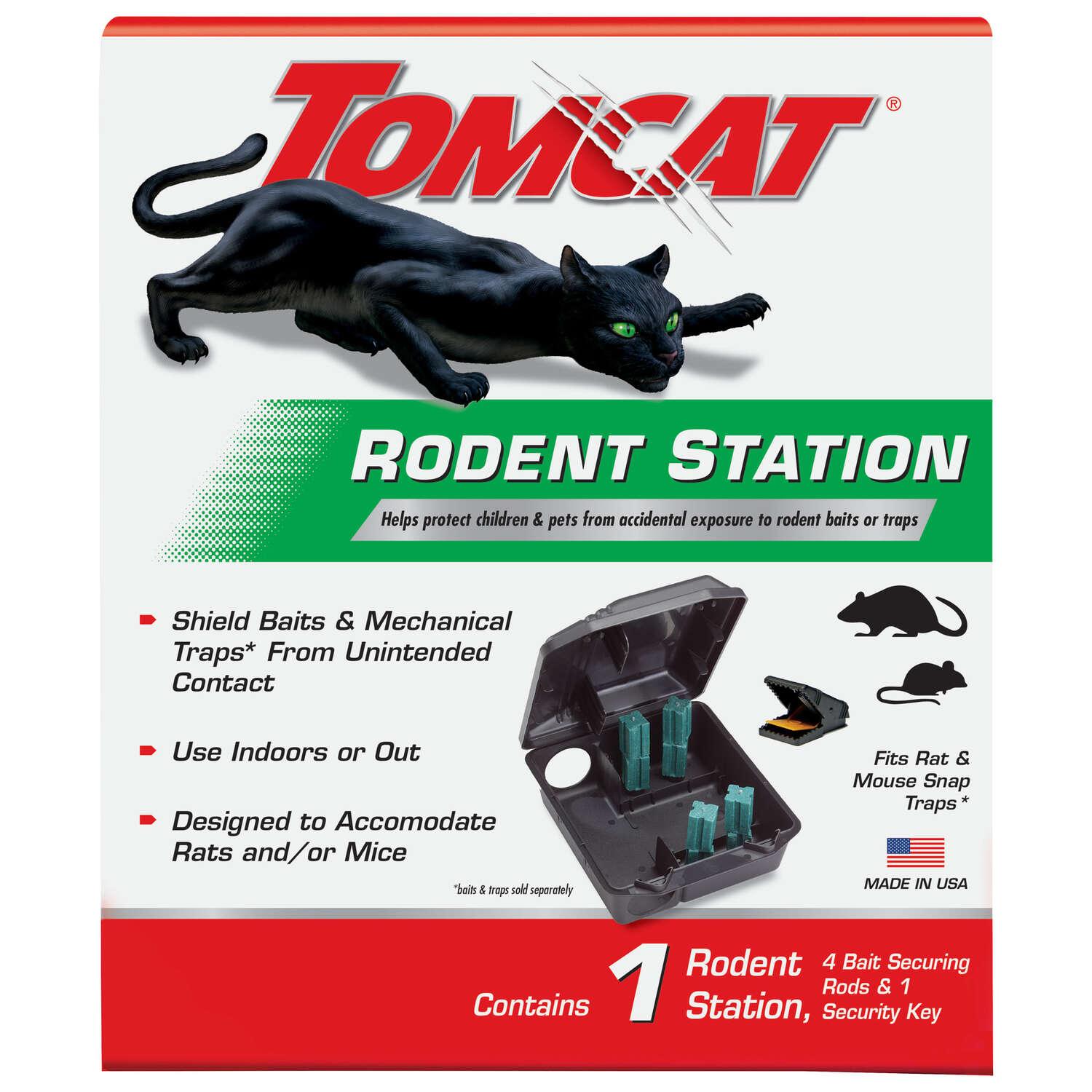The Tomcat Rodent Station is a highly versatile device designed for indoor or outdoor use. Made of highly durable plastic, this station helps protect children and pets from accidental exposure to rodent baits or traps(Baits and traps sold separately). The Tomcat Rodent Station accommodates both rats and mice and can be used with snap traps or block bait. Helps to effectively kill rats, mice and other rodents or pests. Contains 1 rodent station, 4 bait securing rods and 1 security key. Weather- and tamper-resistant; usable indoors and outdoors. Rodent stations are easy to use, allowing placement in small places like entry and garage doors, below windows, near utilities and any other areas where rodents tend to hide.