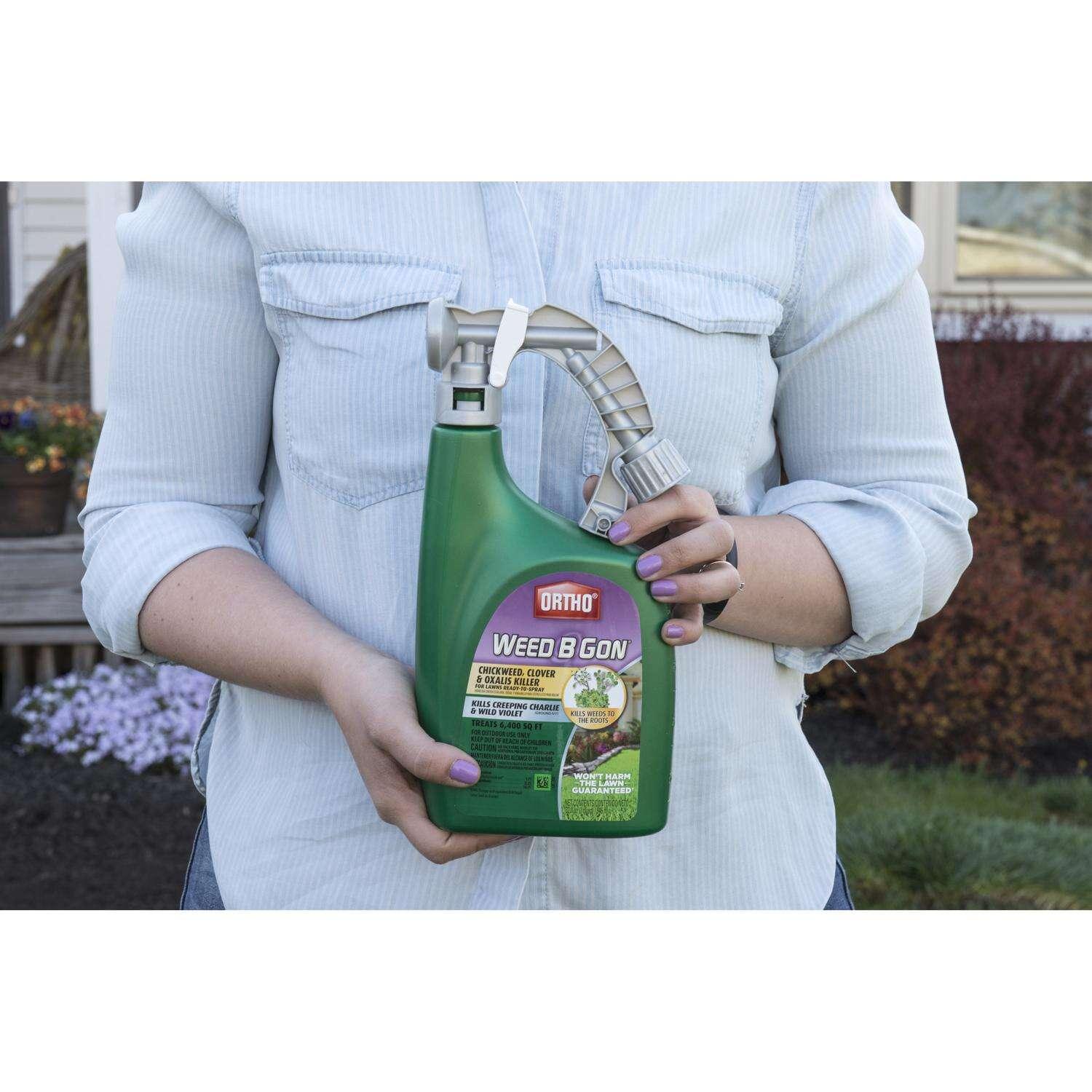 Are you tired of bothersome weeds creeping into your lawn. Ortho Weed B Gon Chickweed, Clover and Oxalis Killer for Lawns Ready-To-Spray is formulated to kill tough weeds in your lawn. The formula kills Ground Ivy (Creeping Charlie), Speedwell (Veronica), Wild Violet and other tough lawn weeds as listed. Plus, the spray won't harm your lawn-guaranteed. No mixing and no measuring is needed. Just spray and go! When used as directed.