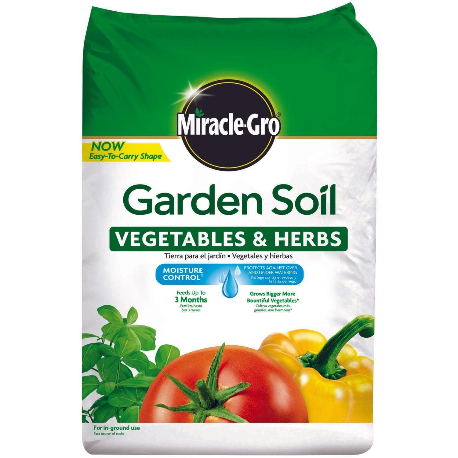 Grow a bountiful harvest with Miracle-Gro Garden Soil Vegetables & Herbs. Enriched with a blend of essential nutrients and formulated with continuous release plant food, it will feed plants for up to 3 months. Plus, Moisture Control technology protects against over and under-watering so you can grow a bigger harvest. vs. unfed plants.