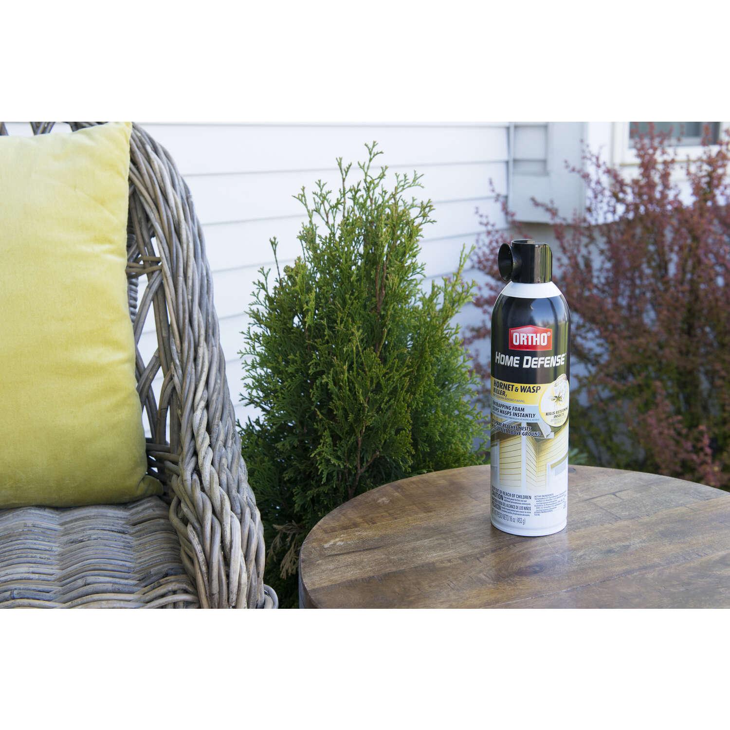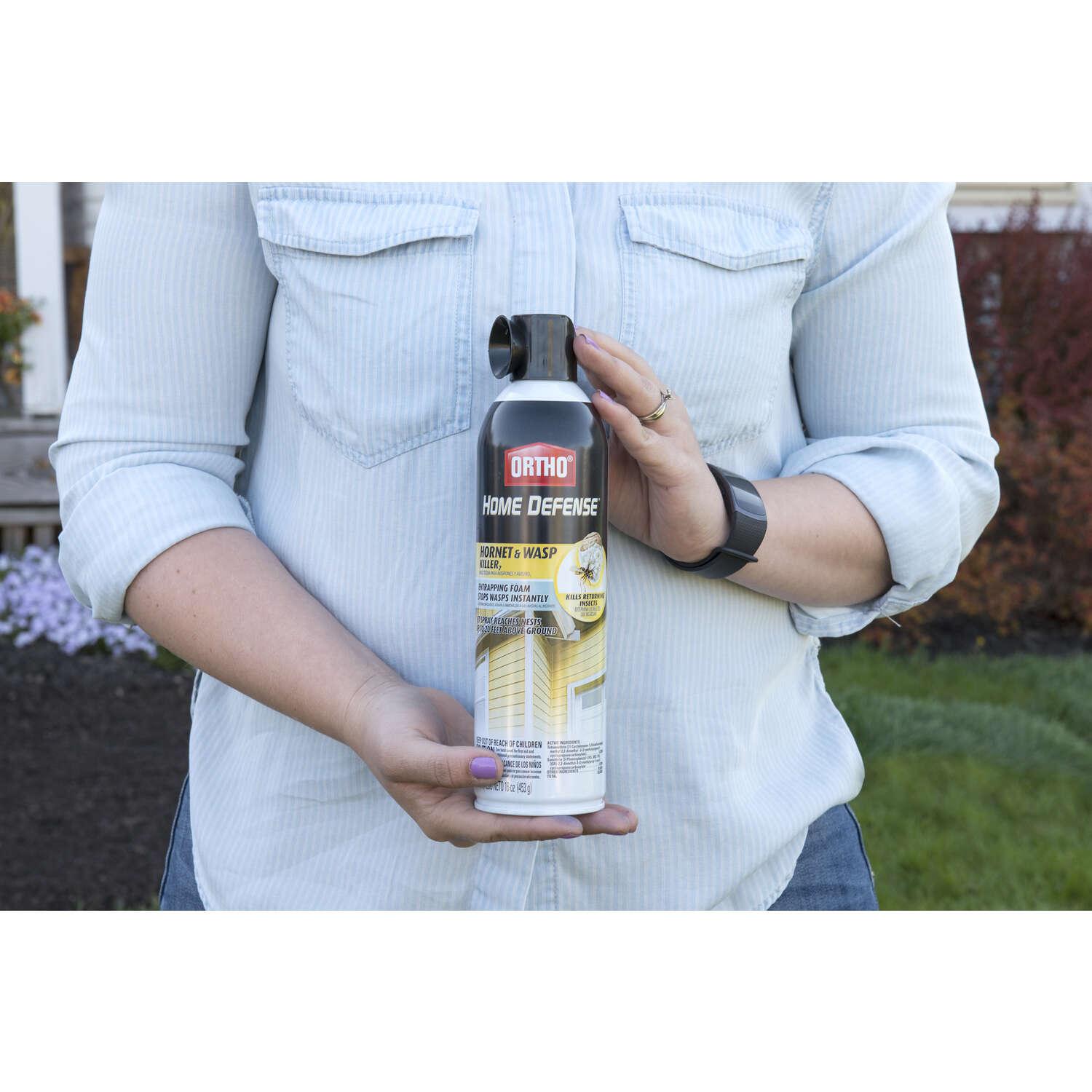 Ortho® Home Defense® Hornet & Wasp Killer is the one product you need to protect against hornets, wasps, yellow jackets and other listed insects. You no longer have to stand close, the jet spray reaches nests up to 20 feet about the ground! The foaming spray traps wasps and hornets inside the nest, providing rapid knockdown and kill. It also kills the hornets and wasps that return to the nest after it has been sprayed.