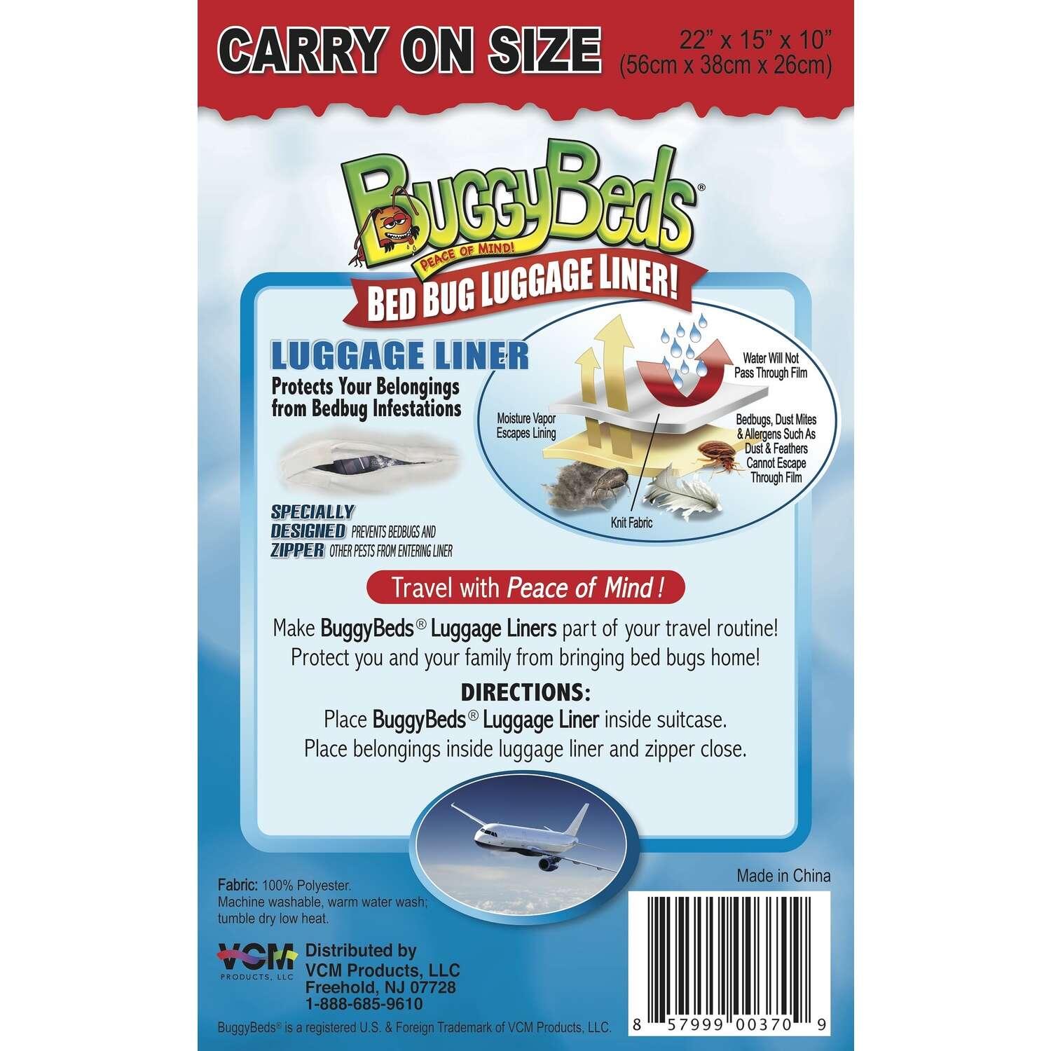 • Carry-on size bed bug luggage liners are innovative encasements designed to protect your clothing and valuables while traveling
