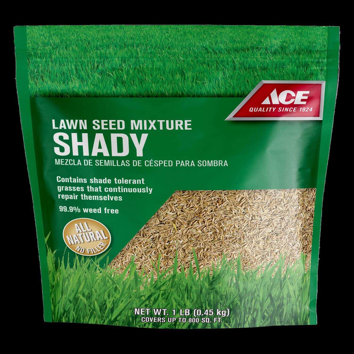 All natural seed - no coating. Shady Grass Seed mixed. Replaces Ace SKU 71374. Contains Tall Fescue, Creeping Red Fescue and Annual Ryegrass.