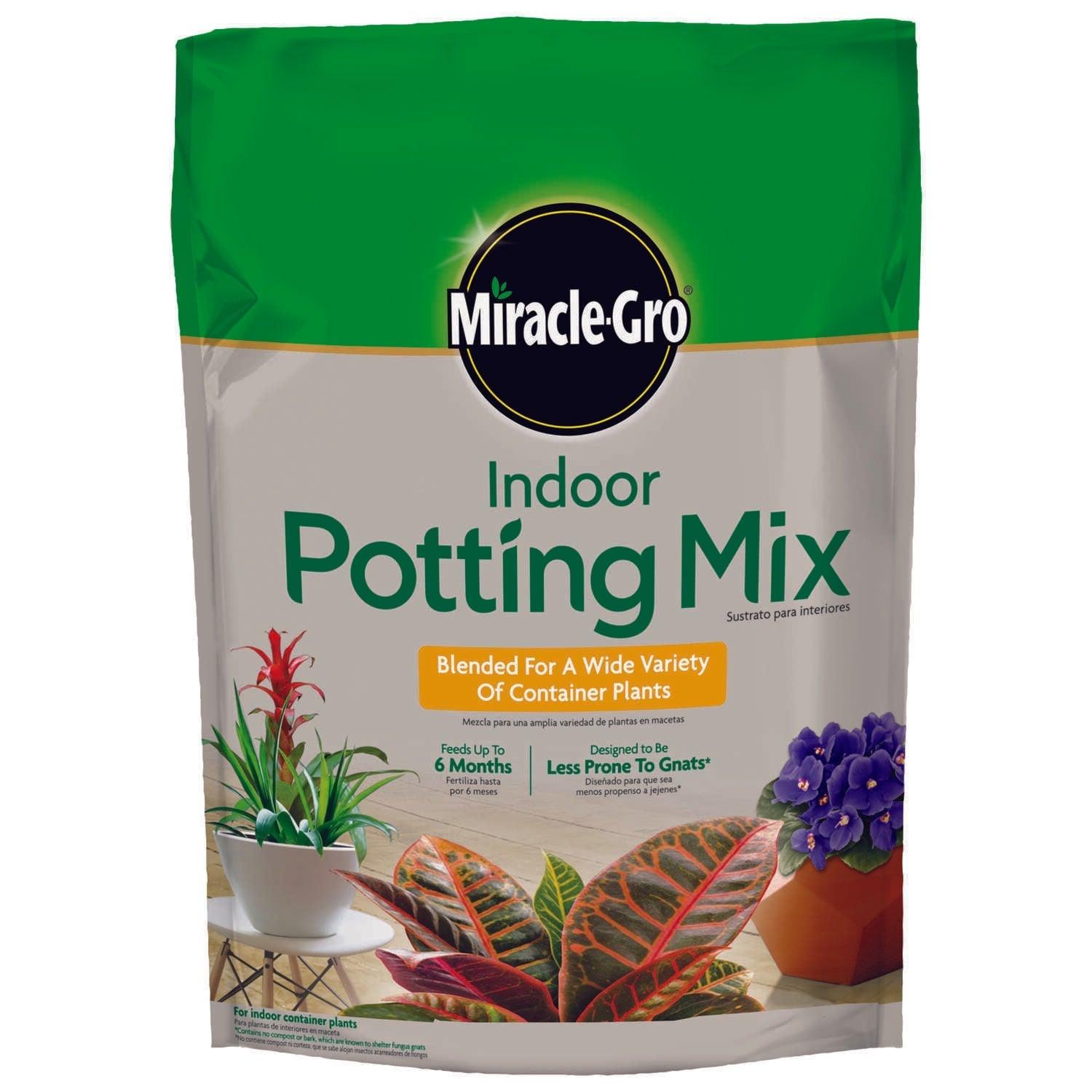 Grow amazing indoor container plants with Miracle-Gro Indoor Potting Mix. It has been blended for a wide variety of container plants and is designed to be less prone to gnats. This mix has an easy-to-water formula that helps the soil easily re-wet while feeding for up to 6 months. Contains no compost or bark, which are known to shelter fungus gnats.