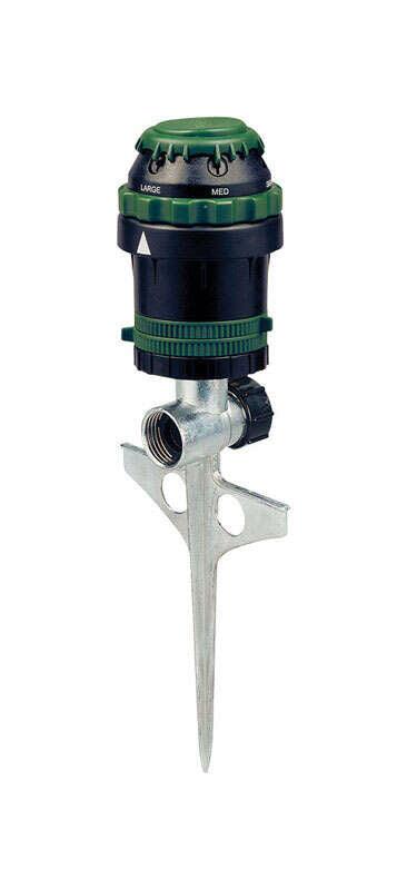 The H2O-Six Gear Drive Sprinkler is one of the most versatile sprinklers on the market. It has six spray patterns to choose from, making it ideal for small, medium or large watering areas. Simply rotate the head and click a pattern into position; no tools required! The three position diffuser gives you complete spray control, spray from 15 up to 30 ft. radius. Slide the tabs to set the right and left rotating stops; changing the spray pattern anywhere from 25 to 360 degrees. Constructed of durable, high-impact materials, this whisper-quiet gear drive sprinkler provides years of use.