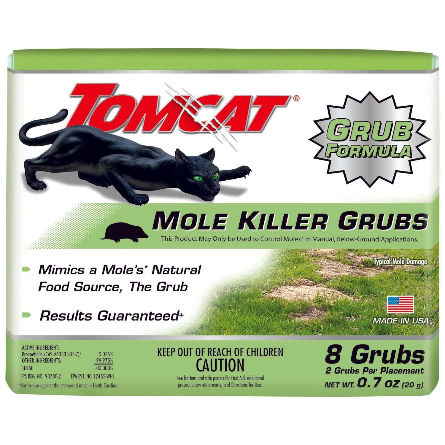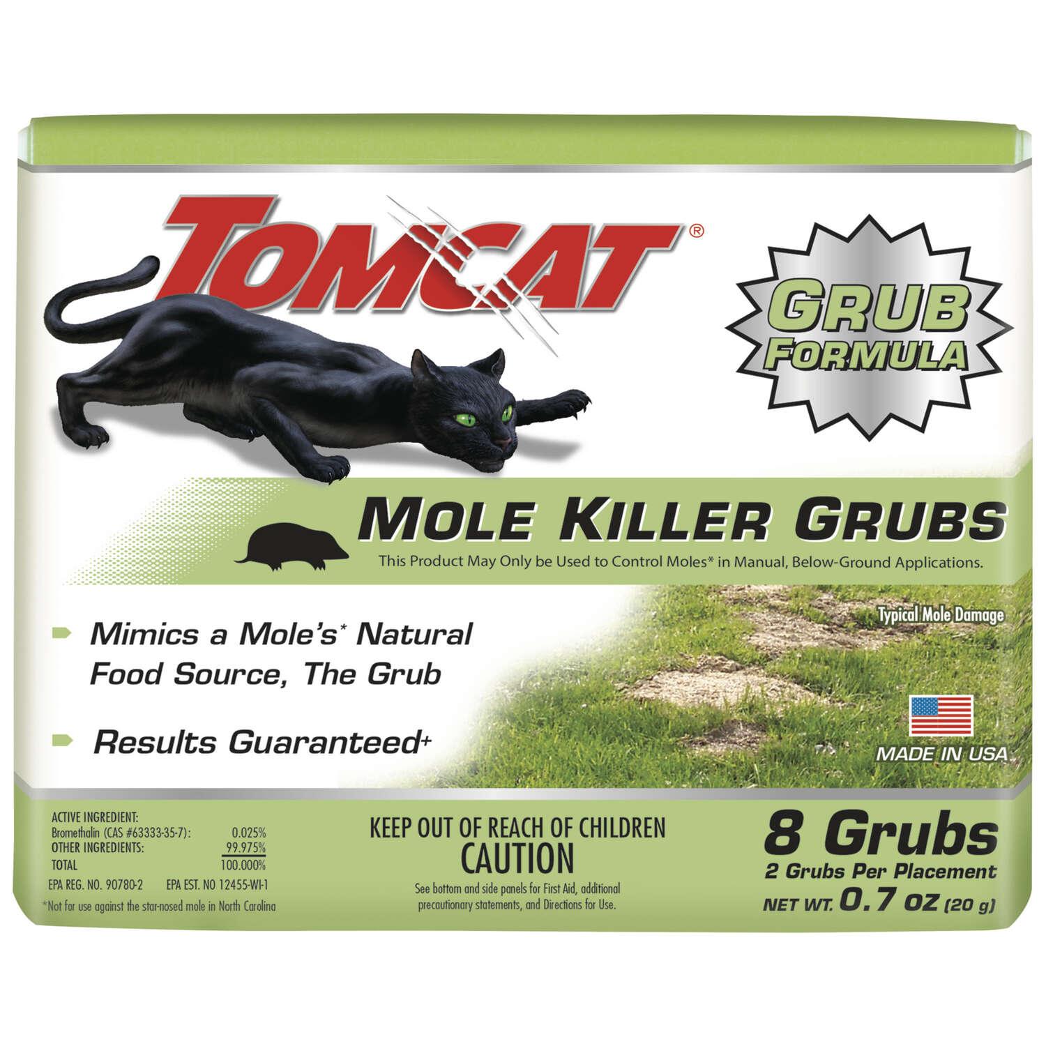 Effective against most common mole species, Tomcat® Mole Killer Grubs mimics a mole’s natural food source–the grub. Moles+ may consume a lethal dose in a single feeding, but it may take 2 or more days from the time of bait consumption for moles to die. Not for use against the star-nosed mole in NC. +Not for sale in HI or NY.