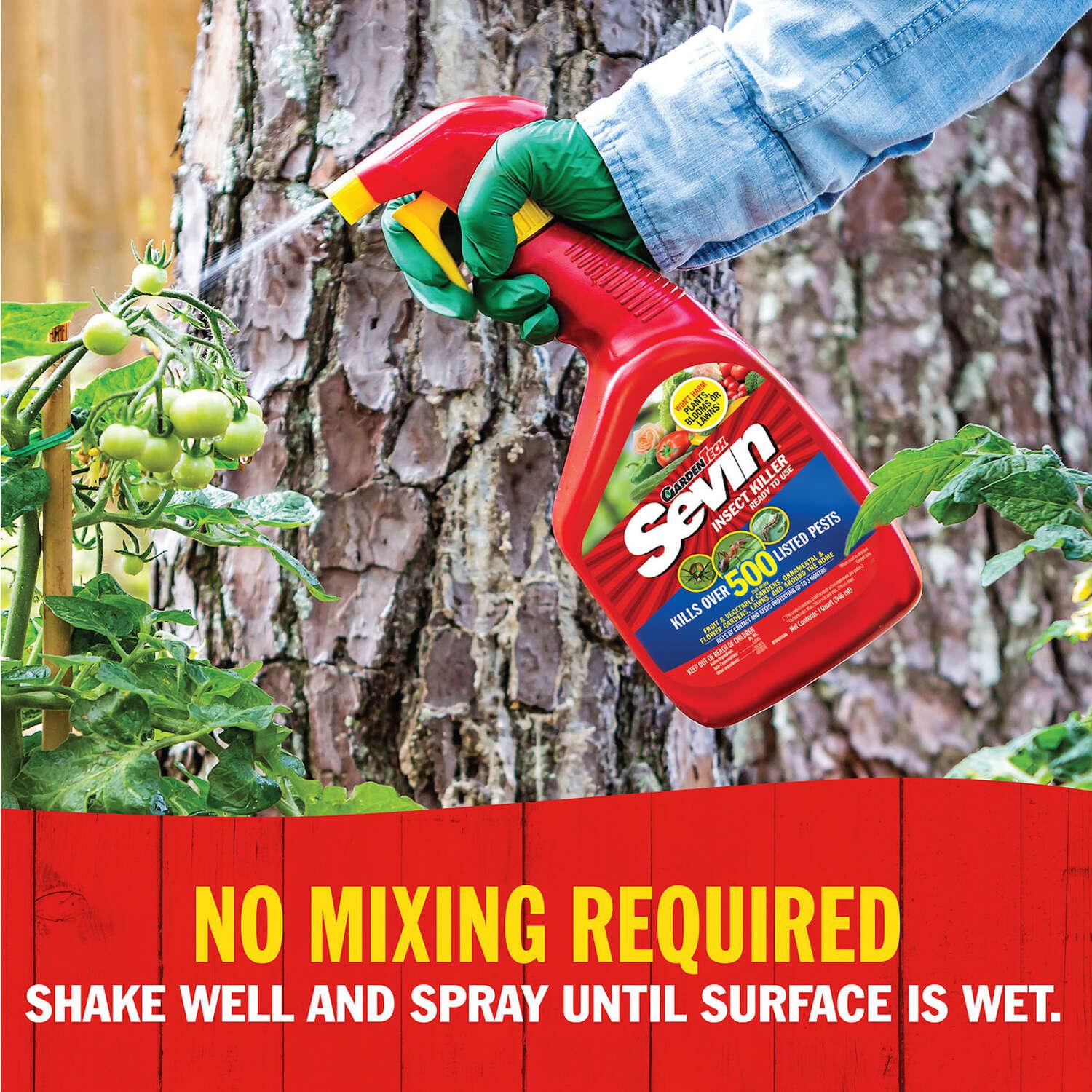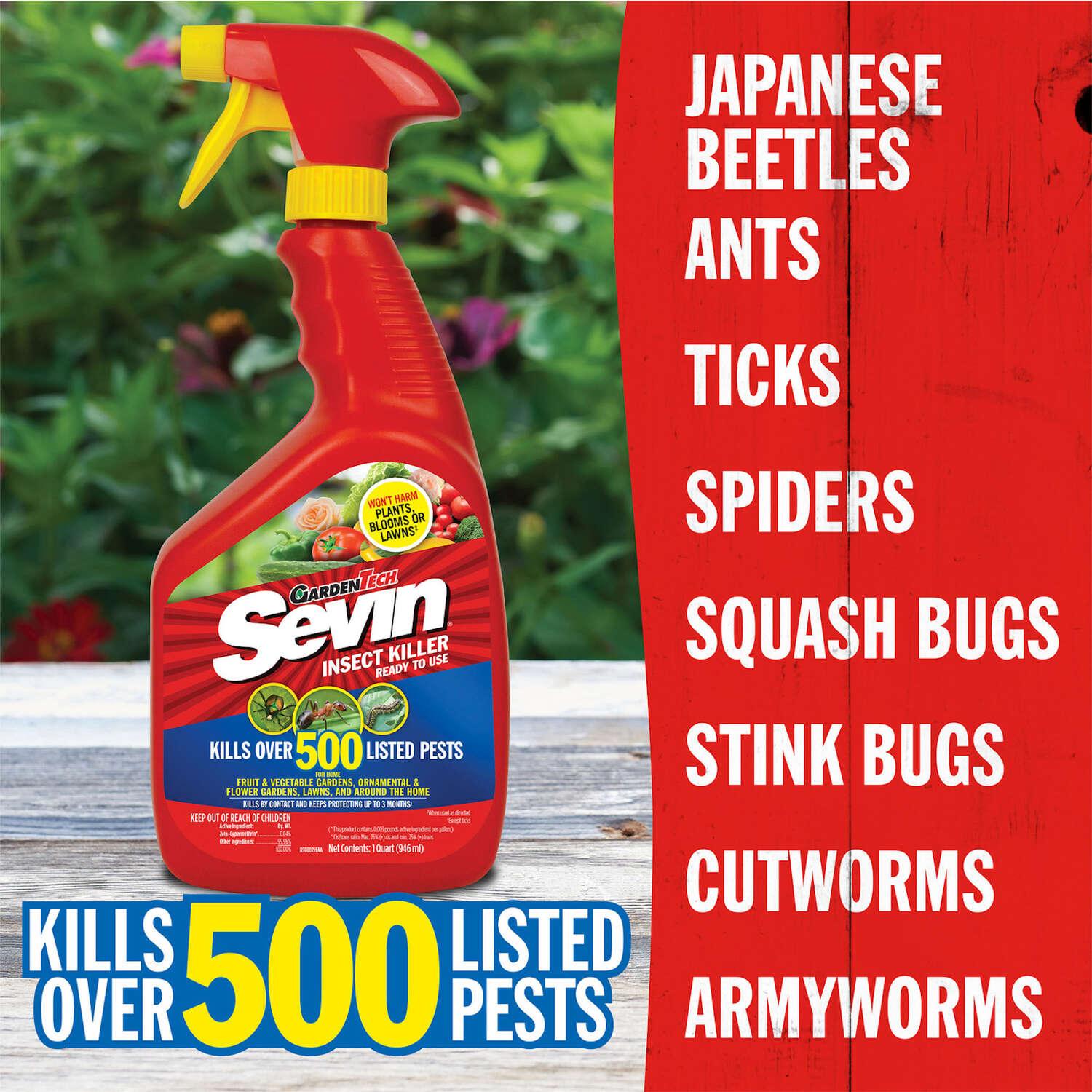When unwanted bugs invade your garden, you need simple control you can count on. Stopping pests and their damage doesn't get easier. Shake the spray bottle and it's ready to go. Sevin Ready-to-Use Bug Killer kills and controls unwanted bugs in ornamental and edible gardens, and handles nuisance insects around your home's perimeter. Kills over 500 insects. Fast acting and protects up to 3 months. Will not harm plants, blooms or lawns. Short pre-harvest intervals. Visible results in minutes.