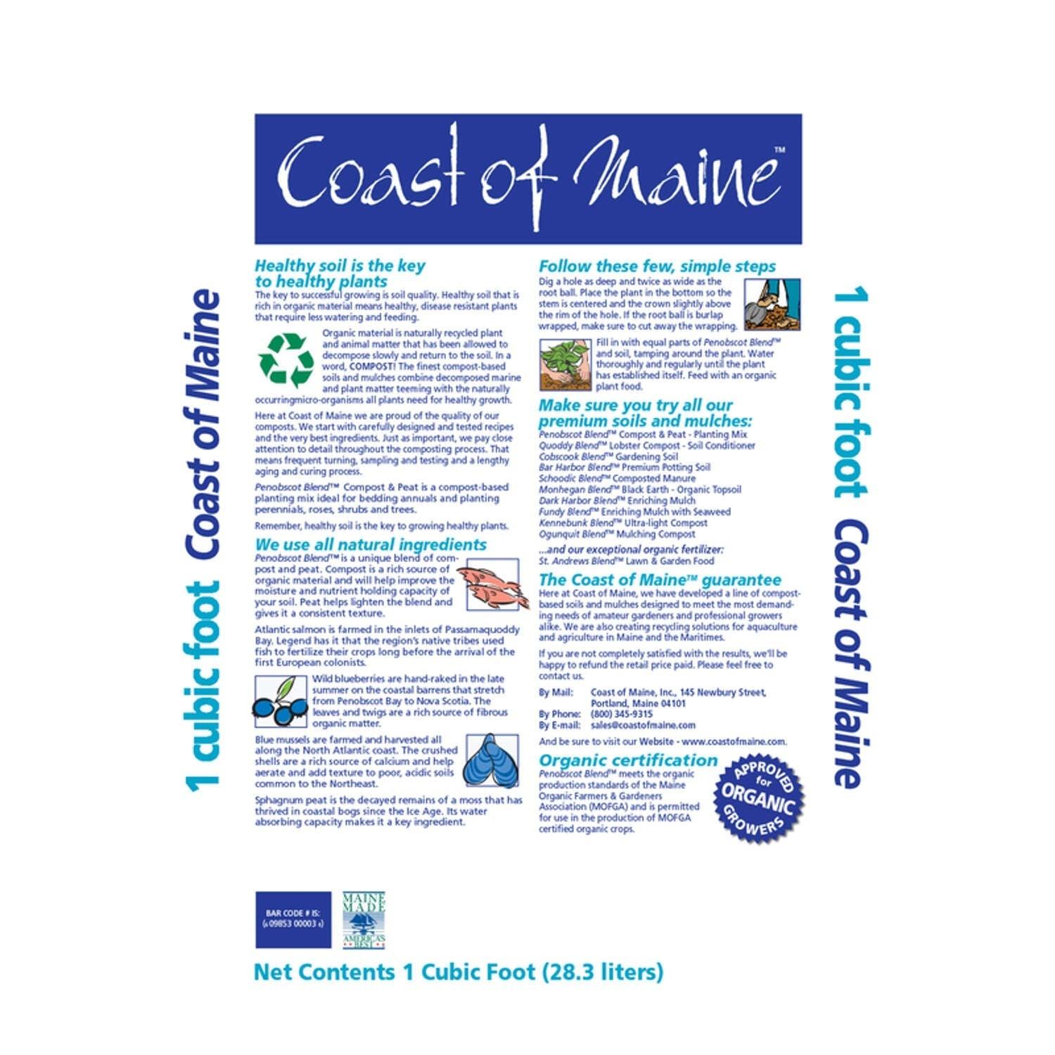 Coast of Maine Organic Products Penobscot Blend Compost & Peat. Mixed with native soil, it helps aerate and add texture and promotes better root growth. When used around new plantings, it provides the nutrients and microorganisms needed for a strong start.