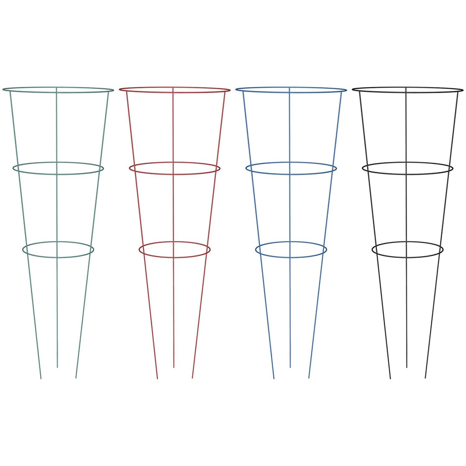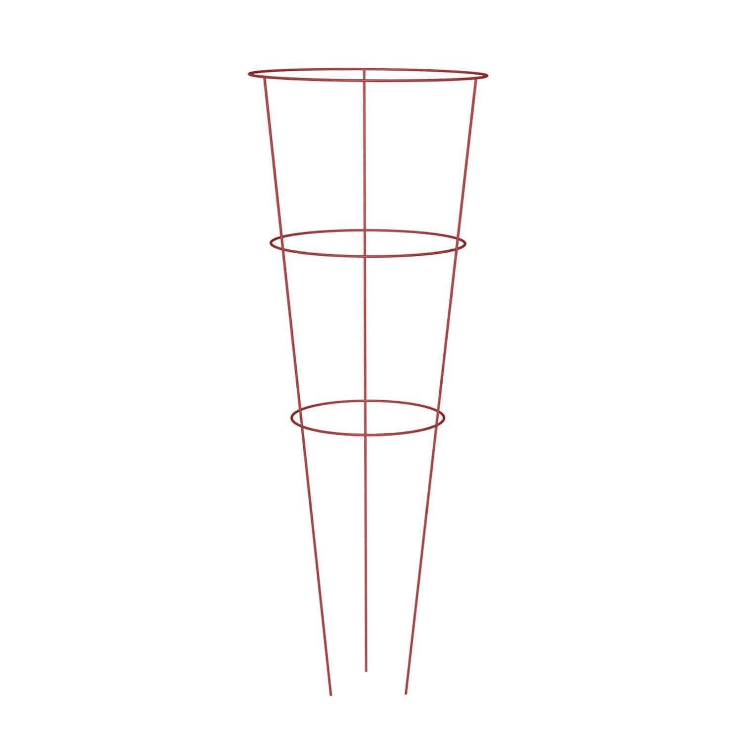 This 16" x 42" round heavy-duty tomato cage features three rings, three legs, made from galvanized wire and powder-coated colors over top of it. A tall overall height and a heavy-gauge wire provides a great vertical support for large tomato plants.