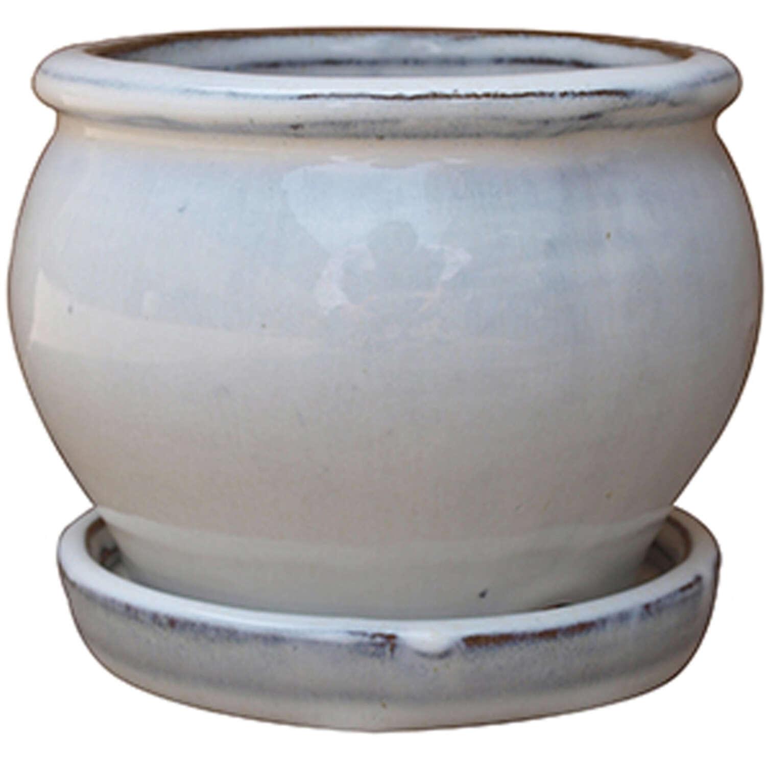 Beautiful glazed ceramic planter with attached saucer to prevent leakage. Hand crafted durable ceramic construction. Perfect statement piece for your indoor or outdoor décor. Recommend adding surface protection when using pot indoors