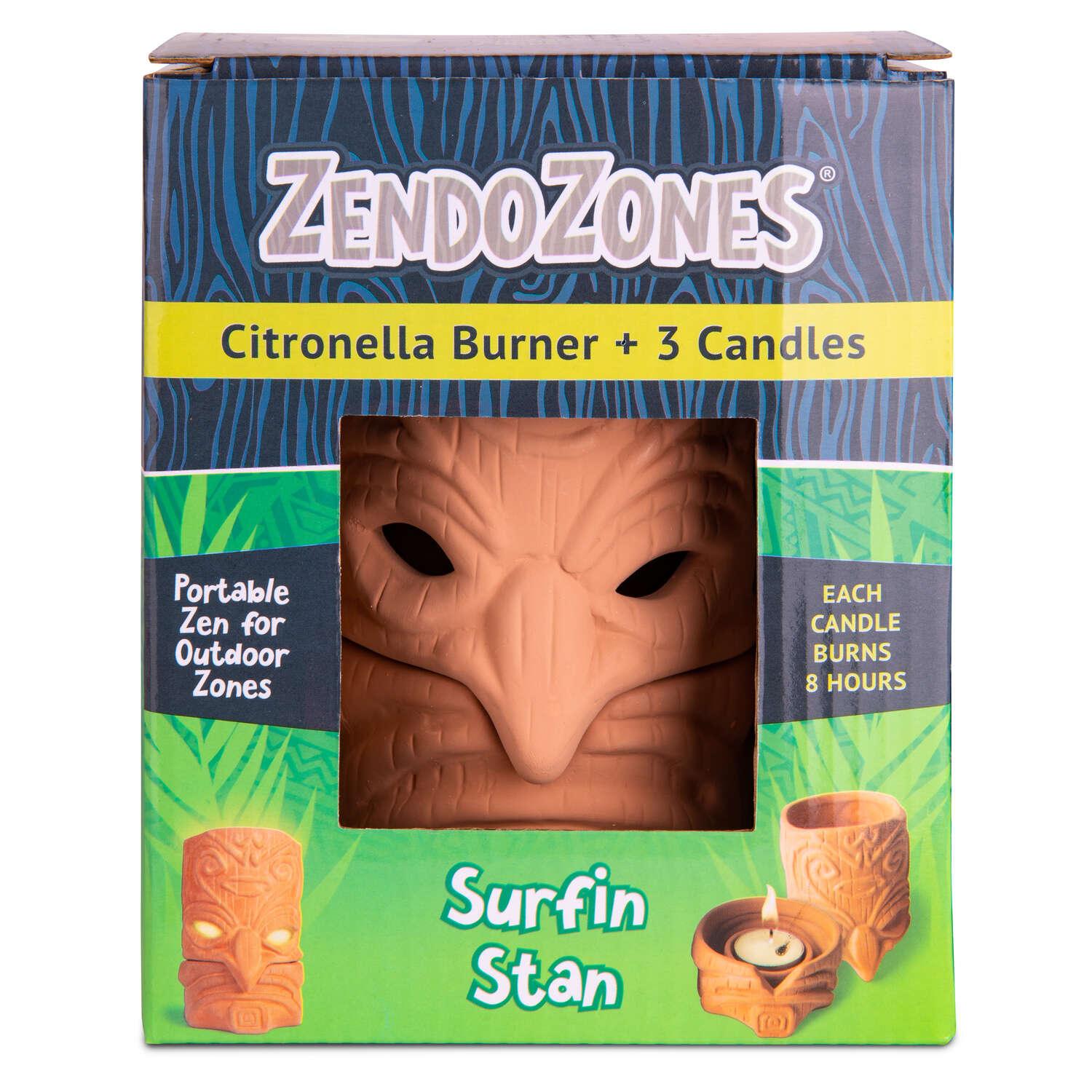 Bring the island to your backyard with Surfin Stan ZendoZones citronella burner. ZendoZones uses natural 3% citronella candles, perfect for patios, decks, backyards, campsites, poolside and more. The gentle smoke from all-natural ZendoZones will help you and your guests relax and find your Zen.