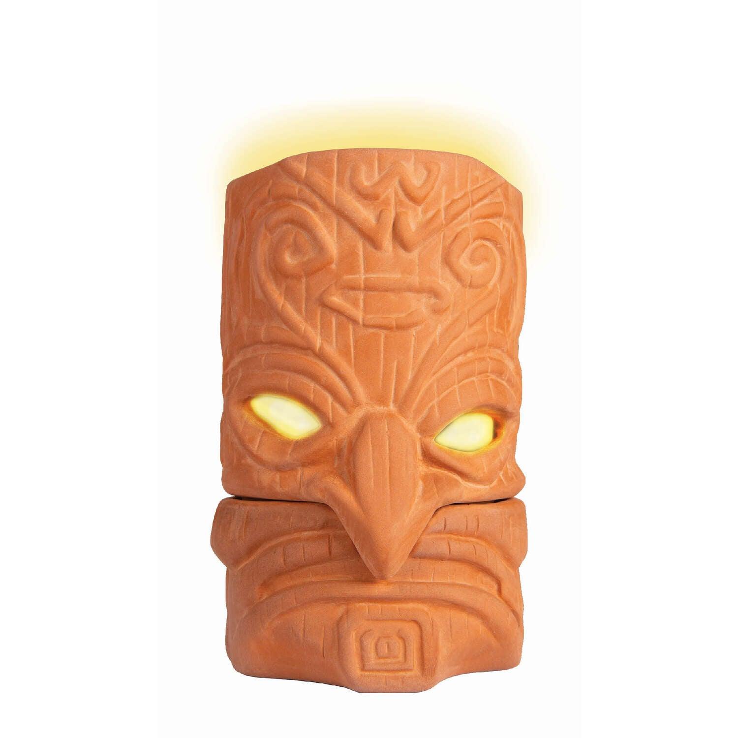 • Lift top portion of the terra cotta burner, place the candle on the platform inside with the wick facing up, light candle and replace top.