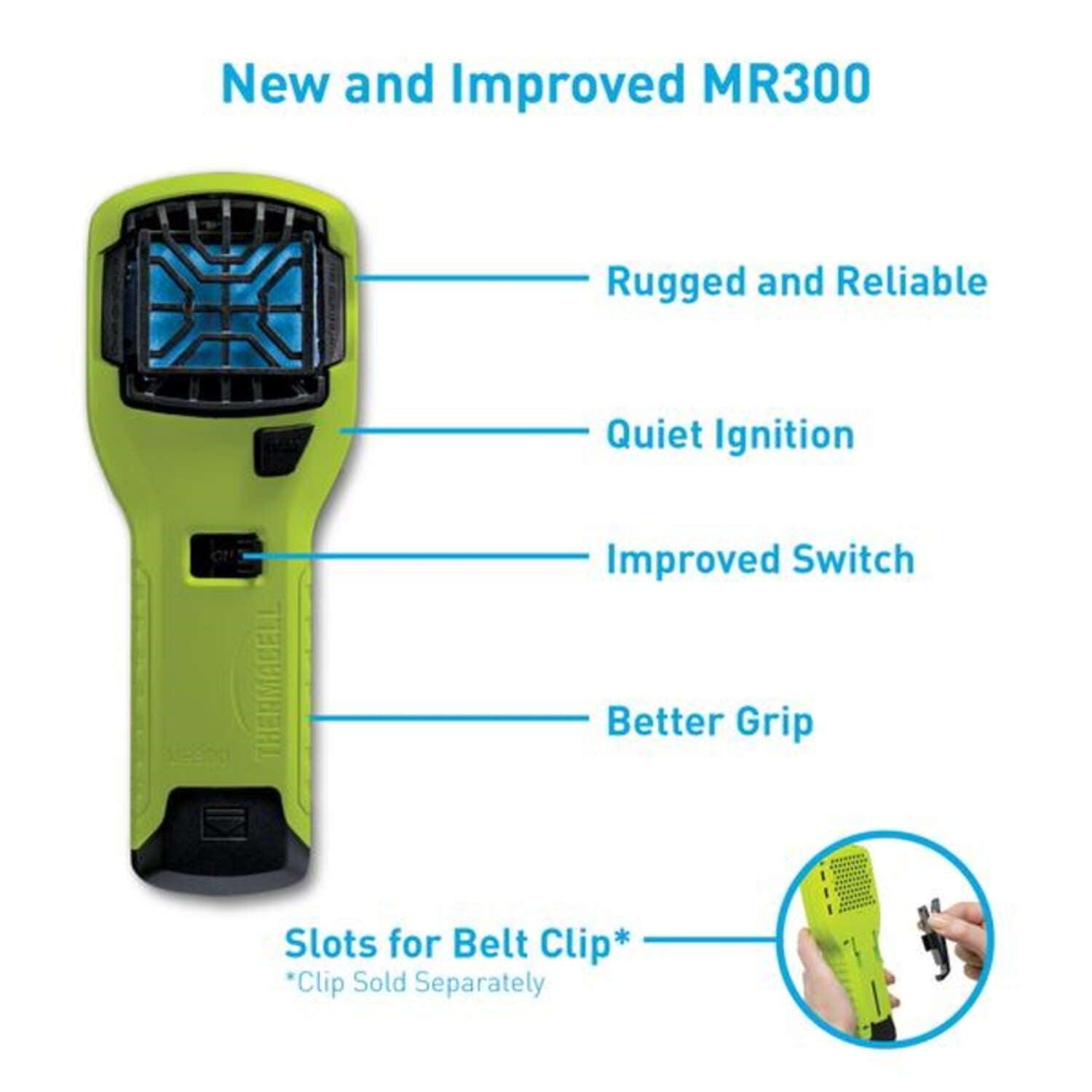 The Thermacell MR300 Portable Mosquito Repeller effectively repels mosquitoes by creating a 15-foot protection zone. The MR300 Repeller can be taken virtually anywhere outdoors to repel pesky mosquitoes, stopping them before they can bite or bother you. The MR300 is the newest Thermacell portable mosquito repeller. It is boasting some new and improved features.