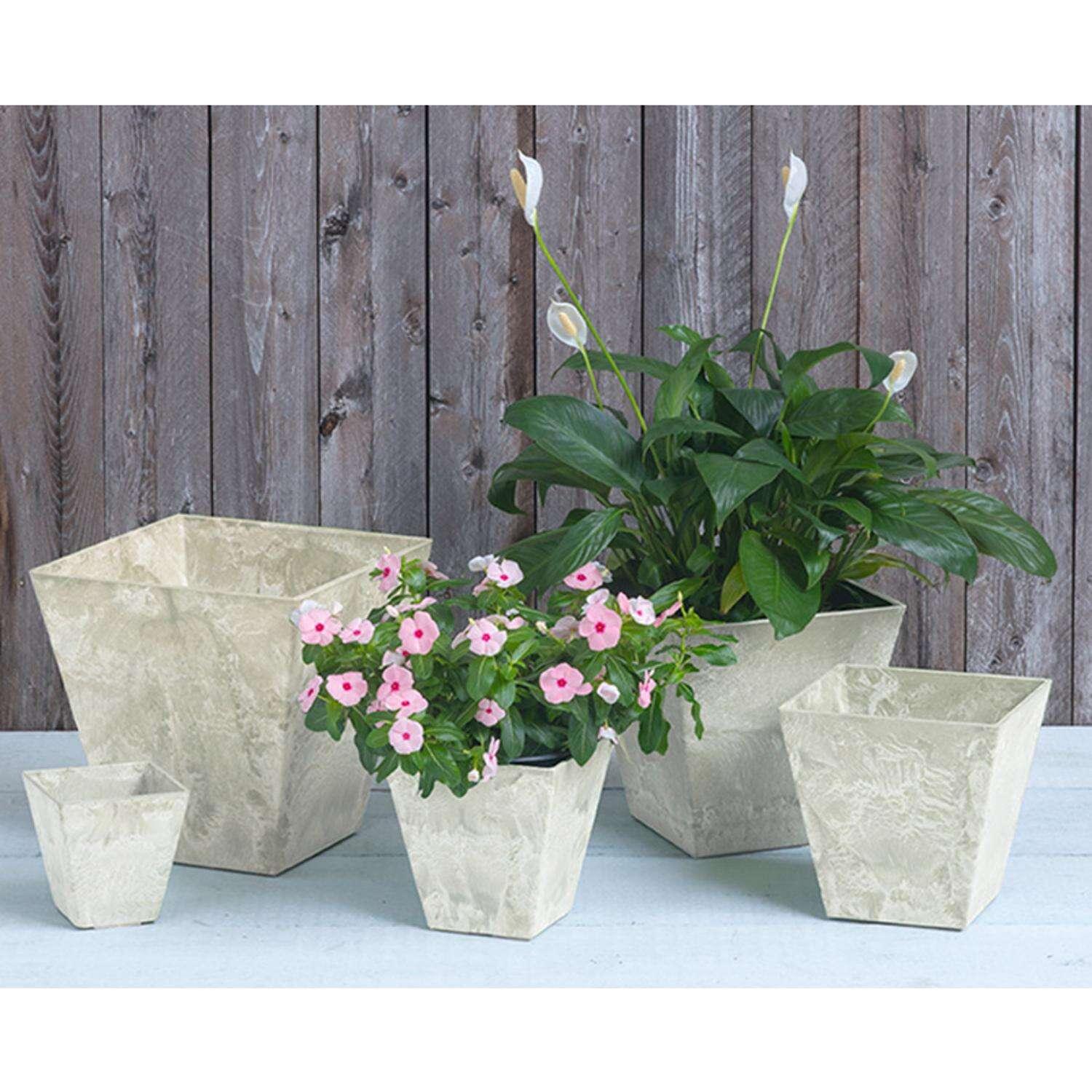The Ella Square Planter uses clean lines and a marbled facade design to enrich your living space and illuminate your favorite indoor and outdoor plants. Combining functionality with elegance, the square pot includes a Water Minder, a removable insert that creates a water reservoir on the bottom of the planter, to rehydrate plants throughout their lifecycle with less frequent watering. Constructed with a superior blend of plastic and natural stone, the Ella Square Planter is lightweight, frost proof, and will last for years and years. This versatile planter is perfect to accentuate your interior and exterior décor and makes maintaining your favorite plants a walk in the park.