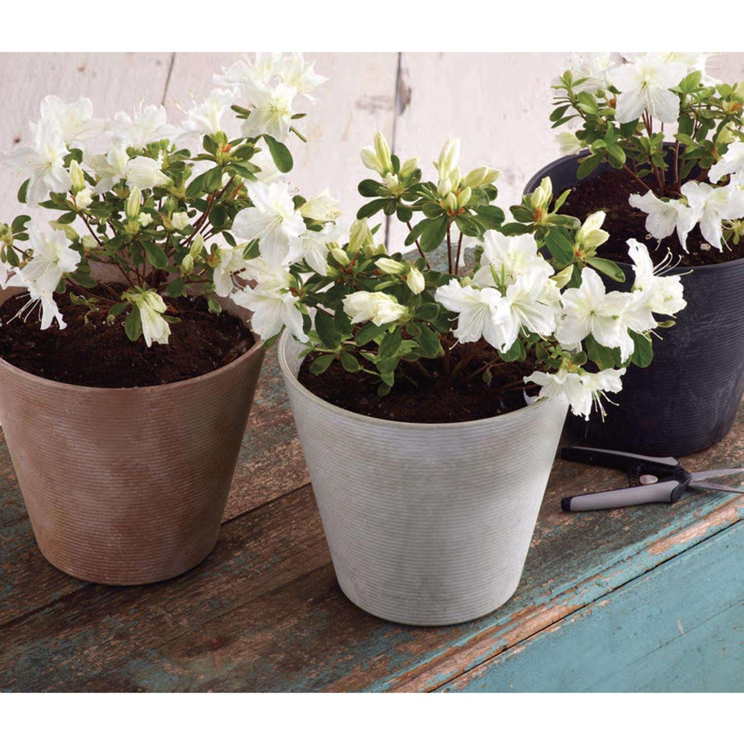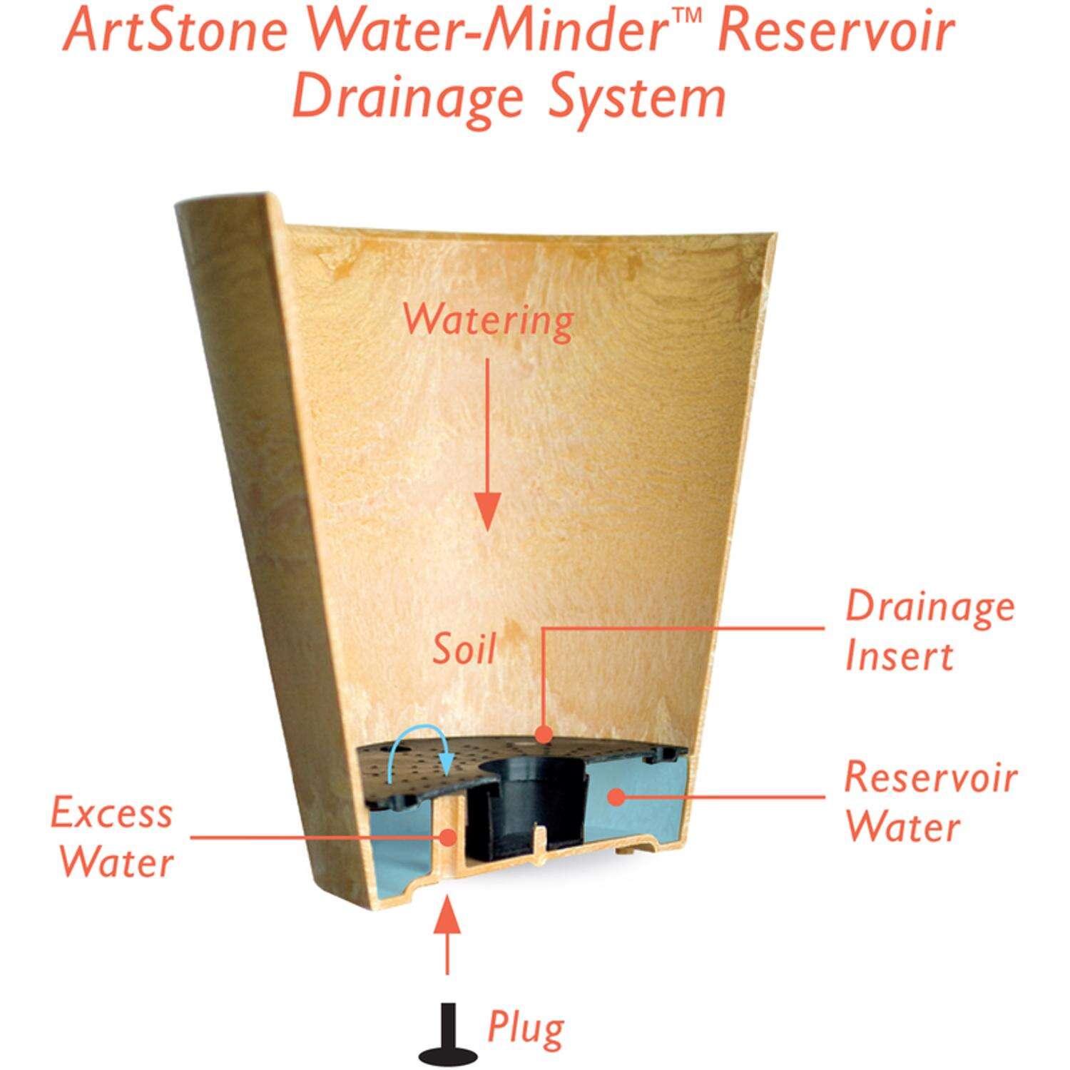 The Cali Round Planter is a modern representation of a classic design. The textured horizontal banding on the outside surface adds depth and character to the traditional round planter. The pot itself is constructed with ArtStone, a proprietary blend of natural stone and high-grade resin. It may look like heavy pottery, but this planter is lightweight and easy to move around your living space. Available in a multitude of sizes and colors, feel free to mix and match to meet your style and your plants, flowers or small shrubs. The Cali Round Planter compliments interior or exterior spaces in flawless fashion and functionality. For use outdoors, the footed base gently lifts the planter to promote optimum air flow and the removeable rubber stopper allows for proper drainage. A built-in Self-Watering feature, the Water-Minder, keeps plants hydrated, while preventing overwatering and root-rot. Thoughtfully-designed, this UV and frost resistant planter will last for years.