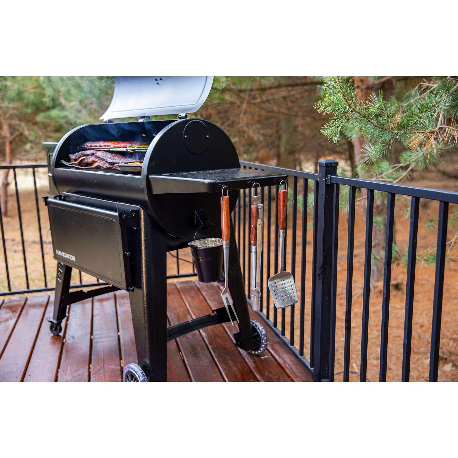 The Pit Boss 1150 Navigator Series Grill features the real-wood flavor of an outdoor cooking adventure. With advanced grilling technology, premium gauge stainless-steel builds, and 100% all-natural hardwood pellet fuel, enjoy Bigger, Hotter, Heavier features - that can only come from a Pit Boss grill. The 1150 offers 8-in-1 cooking versatility, to smoke, bake, braise, roast, grill, barbecue, char-grill, and sear - all in one. Dial in heat ranging from 180° to 500°F and achieve instant direct or indirect heat using the innovative slide-plate flame broiler. Then, use the digital control board and stainless-steel meat probes to track temperatures and set it and forget it, while the Navigator does all the work for you. Additional features of the Pit Boss 1150 Navigator Series grill include a large hopper capacity, large pellet view window, pellet door cleanout, reinforced legs, high-temperature powder coat finish, convertible front-to-bottom built-in tool hooks, locking caster wheels, and the Pit Boss best-in class 5-year warranty.