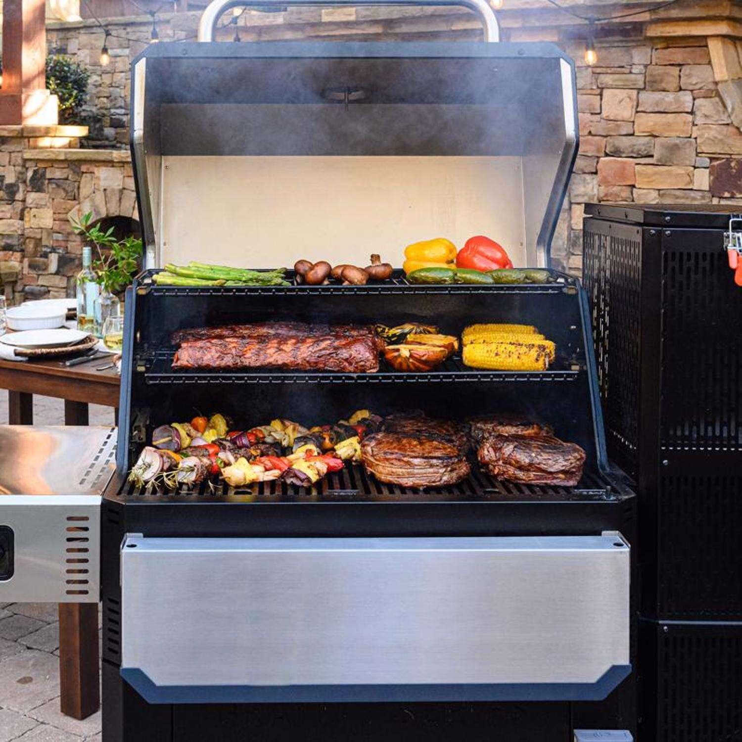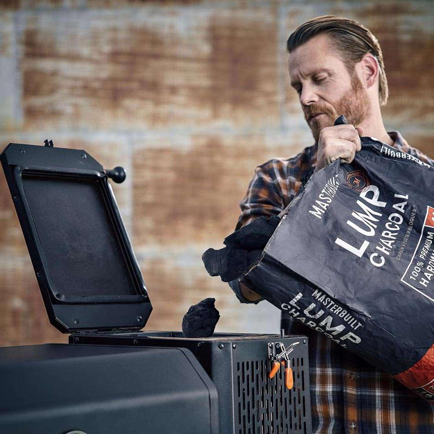 With the Gravity Series™ 1050 Digital Charcoal Grill + Smoker by Masterbuilt, you can smoke, grill, sear, bake, roast and so much more. Set the temperature on the digital control panel or your smart device and the DigitalFan™ maintains the desired cooking temperature. The GravityFed™ charcoal hopper holds up to 8 hours of charcoal and gravity ensures you have constant fuel to the fire. The reversible smoke + sear cast-iron grates and FoldAway™ warming + smoking racks add up to a total of 1050 square inches of cooking space. Master the art of charcoal grilling and smoking with Masterbuilt.