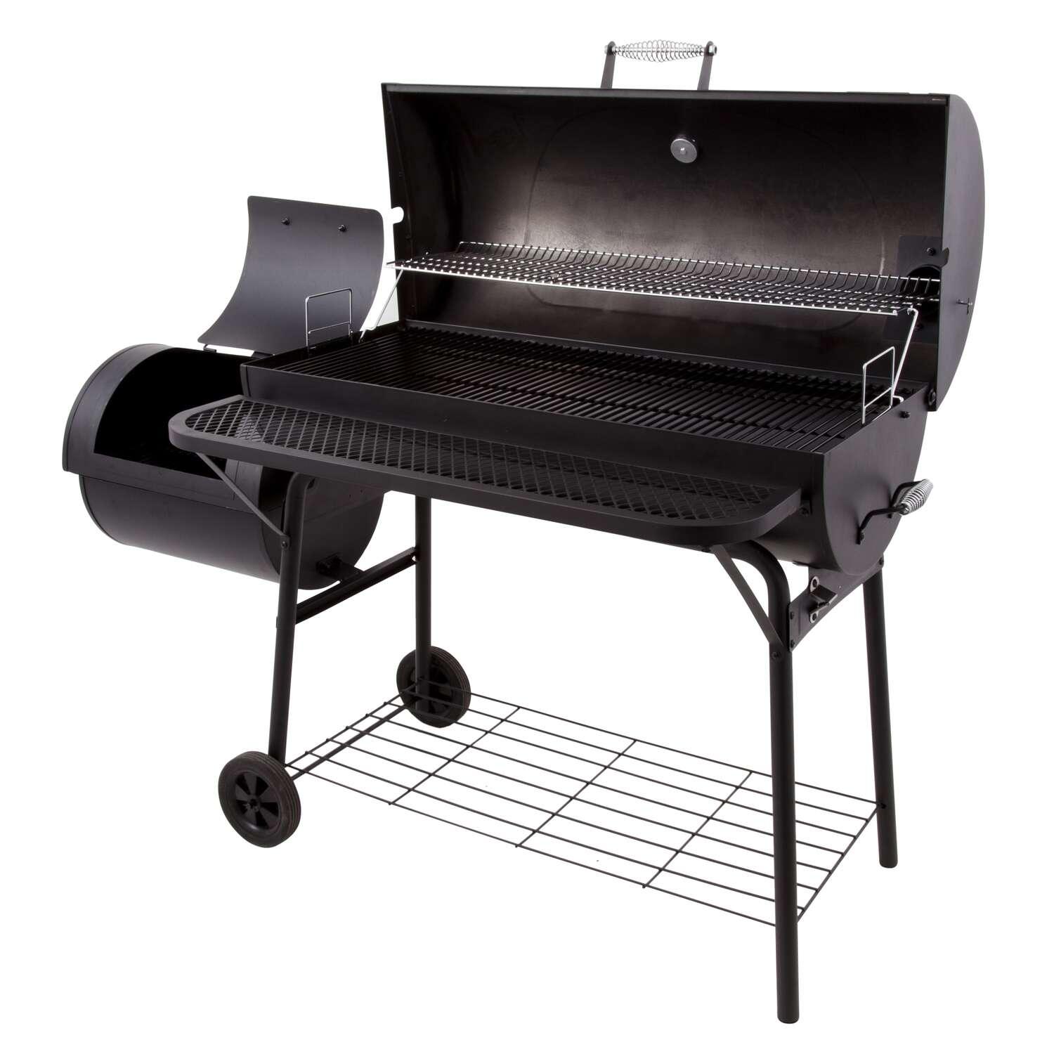 The Offset smoker 1280 is perfect for big backyard BBQ's. It features multiple dampers, a temperature gauge and extra grilling space in the offset chamber. A vertical smokestack with adjustable dampers helps control the smoke and heat. And there is an easy ash clean out door.