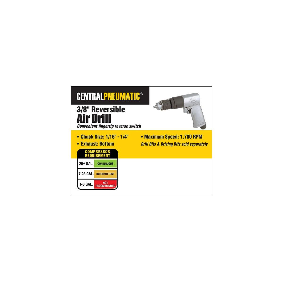Featuring a convenient fingertip reverse, this 3/8 in. Reversible Air Drill delivers a consistent 1700 RPM for drilling light metals. The Jacobs® keyed chuck clamps tight to hold securely in place.