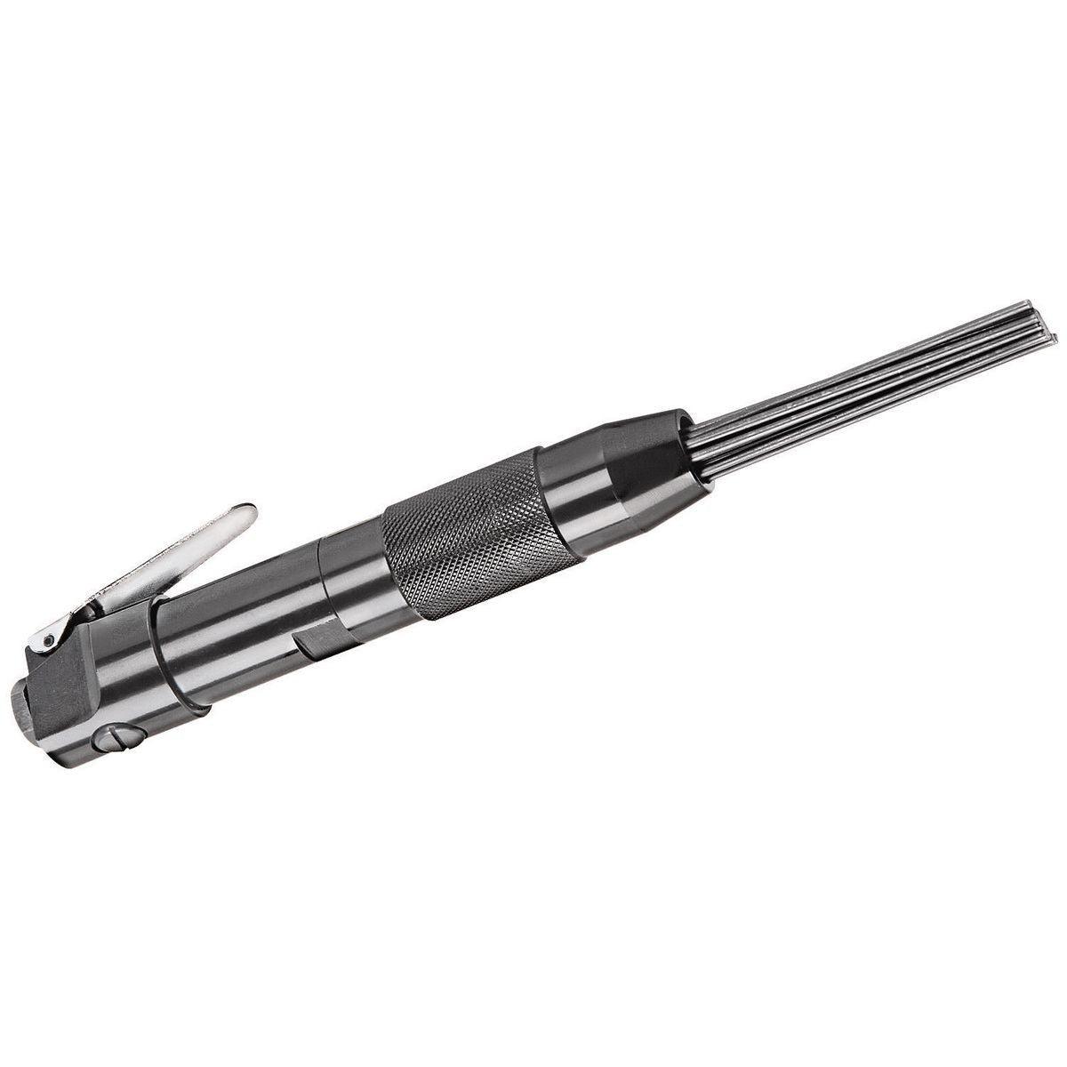 The 12 hardened steel needles on this needle scaler work at a speed of 4000 BPM to remove stubborn rust, dirt, paint and weld slag easily! The needle scaler is constructed of carbon steel and is a great tool for cleaning off parts, tools, equipment and more. A great tool for welders, automotive specialists, do-it-yourselfers and hobbyists.