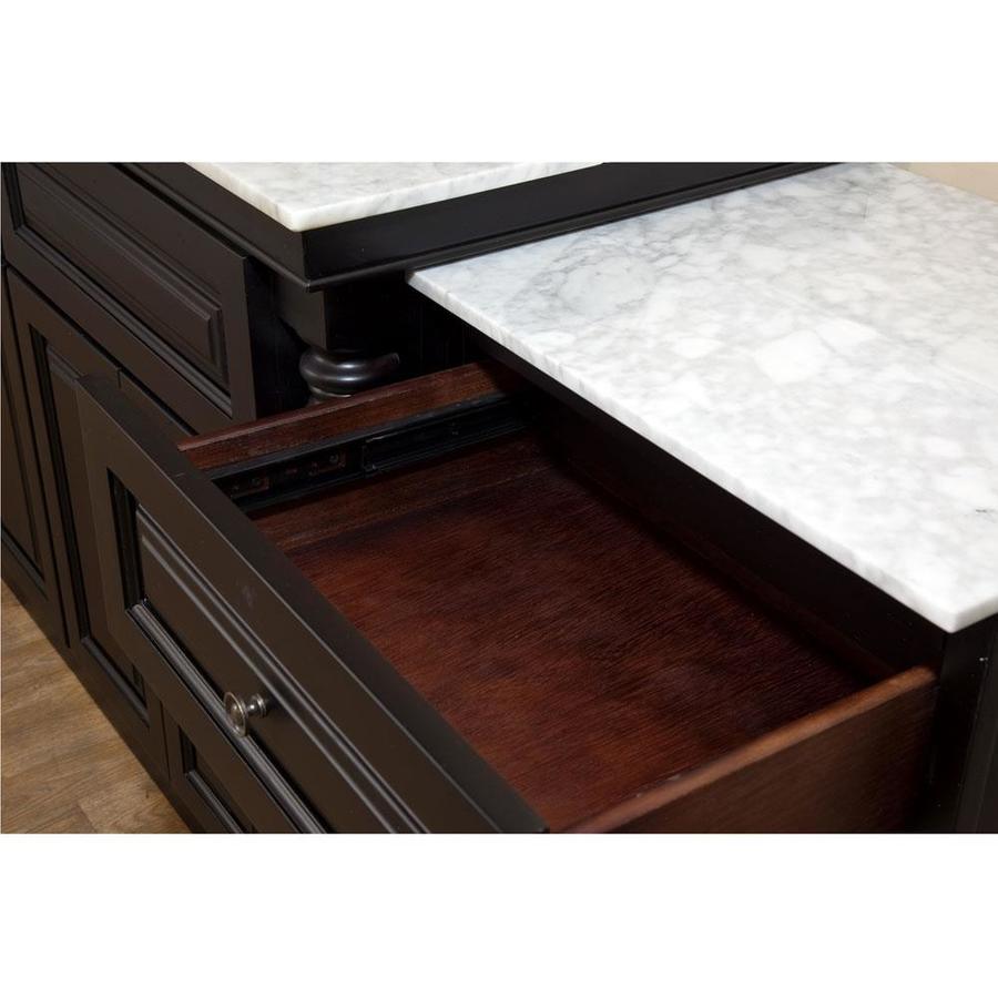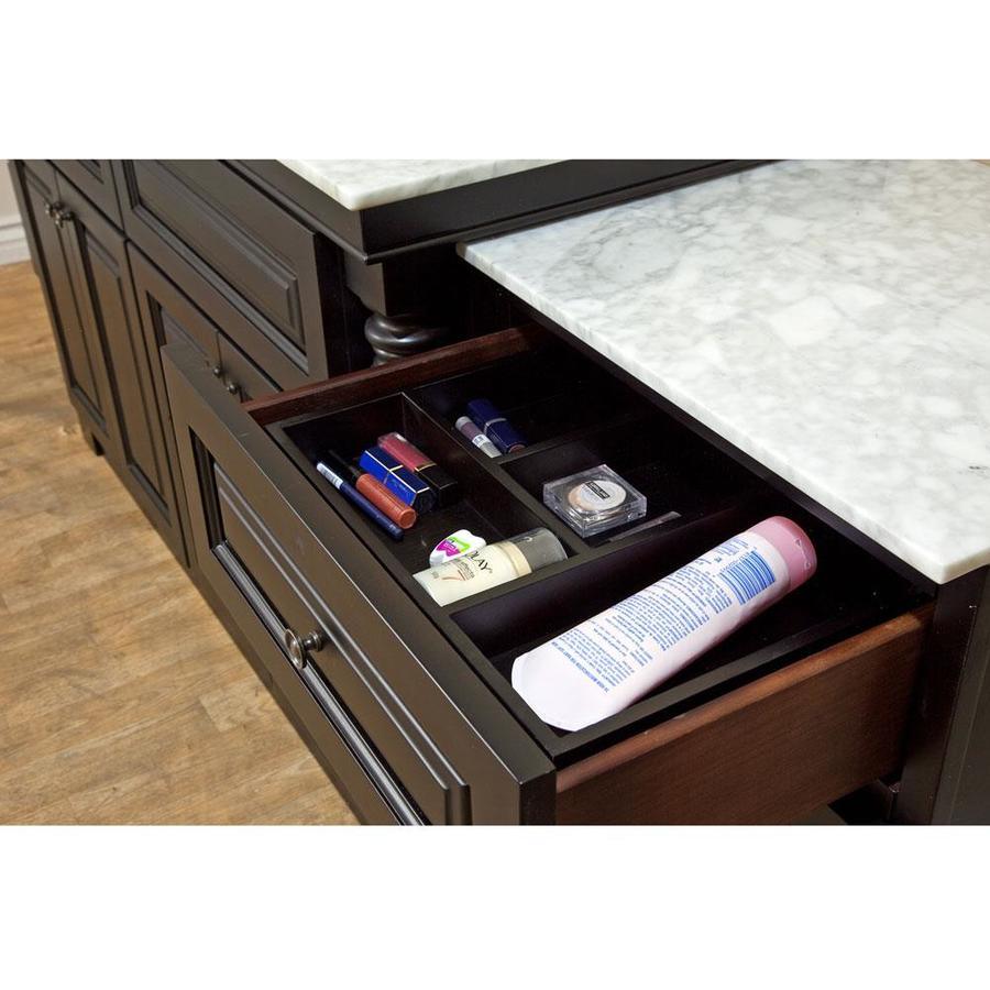 Wood cabinet, no MDF or particle board Water proof wood finish protects against bathroom humidity Space saver-slim sleek design Matching finish throughout the interior Extra counter space Soft close drawer glides