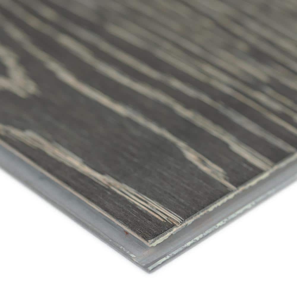 The Carlo Oak Wood Flooring from the A&A Surfaces Woodridge Series elevates any room with its elegant gray tones and wire-brushed finish. Engineered for both beauty and durability, this flooring features a waterproof core and wear-resistant technology, making it ideal for busy homes and light commercial spaces. Enjoy effortless installation with the click-lock system and a lifetime residential warranty.