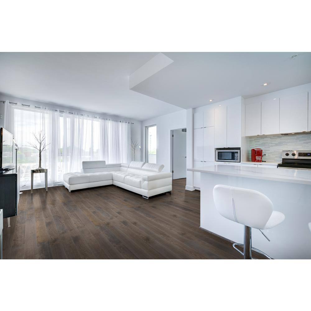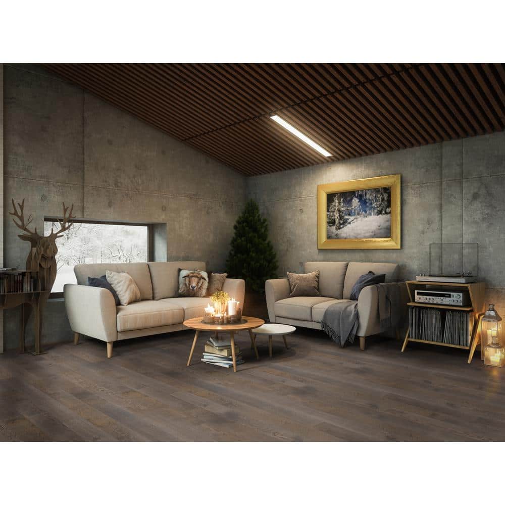 Marvel at the captivating allure of Derlin Oak, where the subtle dance of light knots and intricate graining brings each plank to life. Seamlessly designed with a wire-brushed texture, this flooring transforms mundane rooms into chic havens of tranquility. Imagine pairing it with plush rugs and minimalist furniture, exuding a sense of high-end sophistication. This flooring choice isn't merely functional; it's a testament to luxurious living.