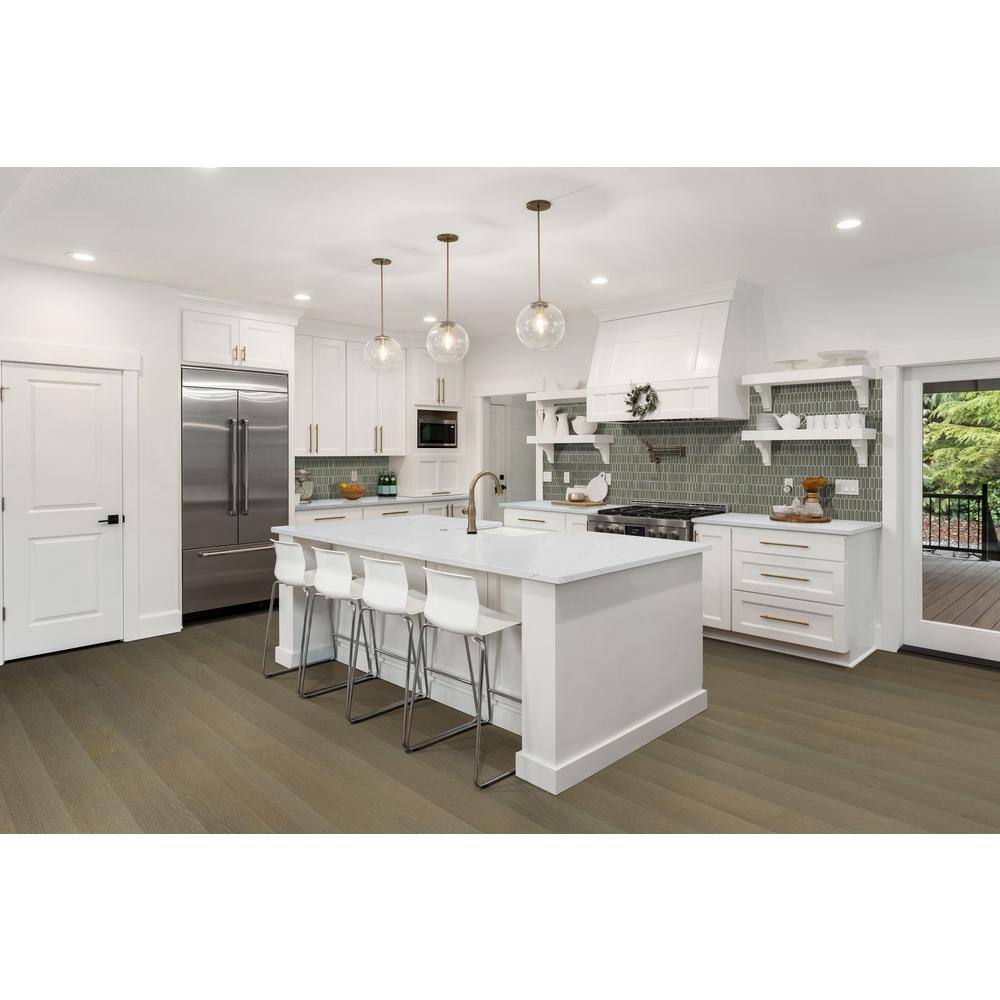 The Woodridge Dorman Oak flooring is a masterful fusion of aesthetics and functionality, grounding your interiors with its serene gray tones and refined wire-brushed finish. Its standout feature is its stone-based core, which delivers both resilience and a subtle, sophisticated texture that draws the eye. Perfect for creating a tranquil yet inviting atmosphere, this flooring can transform any room into a sanctuary of style. Essential for those who seek lavish living without compromising on practicality, it's a foundation of timeless design.