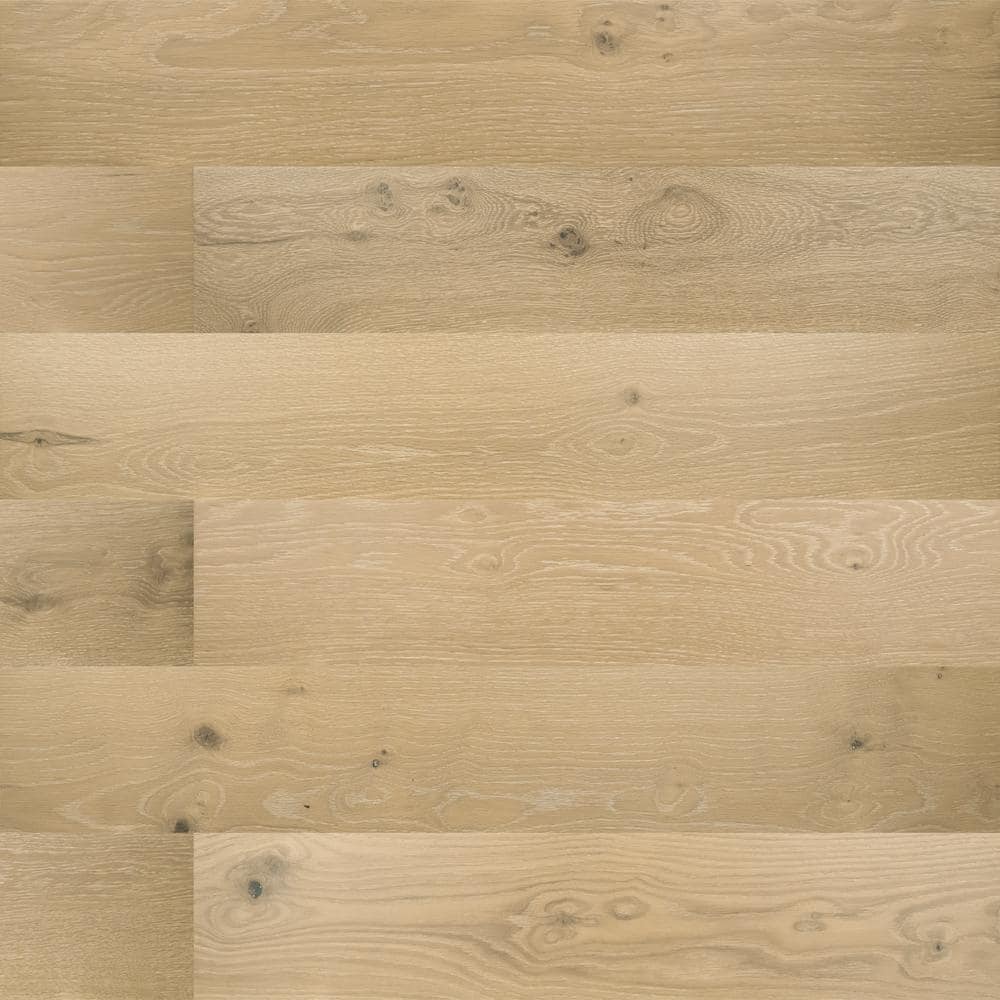 Evoking the timeless beauty of European oak, the Jolie Oak Flooring captivates with its subtly wire-brushed texture and sophisticated macadamia tones. Its standout design feature, a micro-beveled edge, adds refined definition to each plank, lending an artisanal touch to any room. Maximize its aesthetic impact by pairing it with cream-colored upholstered furniture or metallic accents to accentuate its warmth and elegance. Elevate your interiors with Jolie Oak's blend of traditional charm and contemporary resilience—an essential element of modern luxury living.