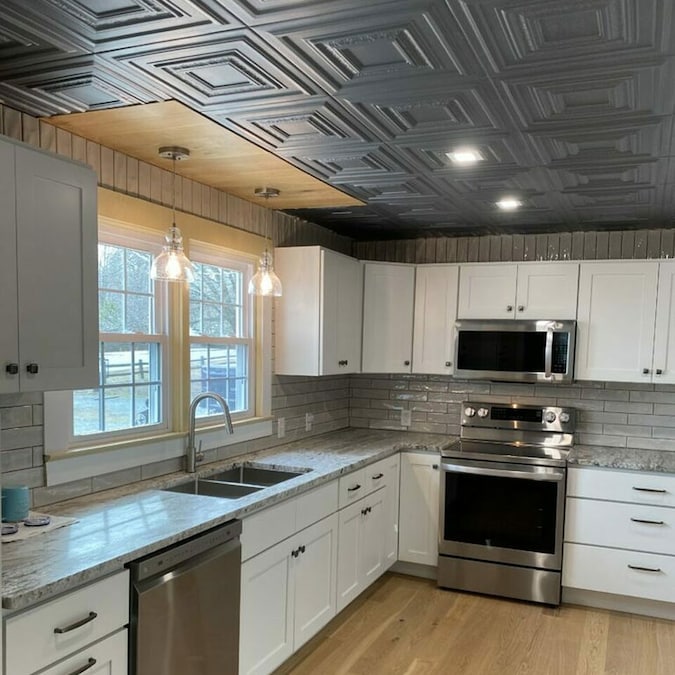 A: Yes, the Chestnut Grove ceiling tiles are specifically designed to be surface-mounted, making them ideal for covering popcorn ceilings easily.