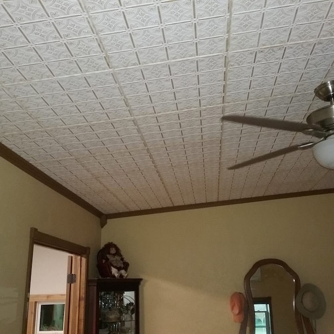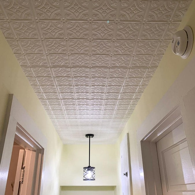 A La Maison Ceilings 1.67-ft x 1.67-ft Emma's Flowers Plain White Polystyrene Surface-mount Ceiling Tile (8-Pack, 21.6-sq ft / Case)