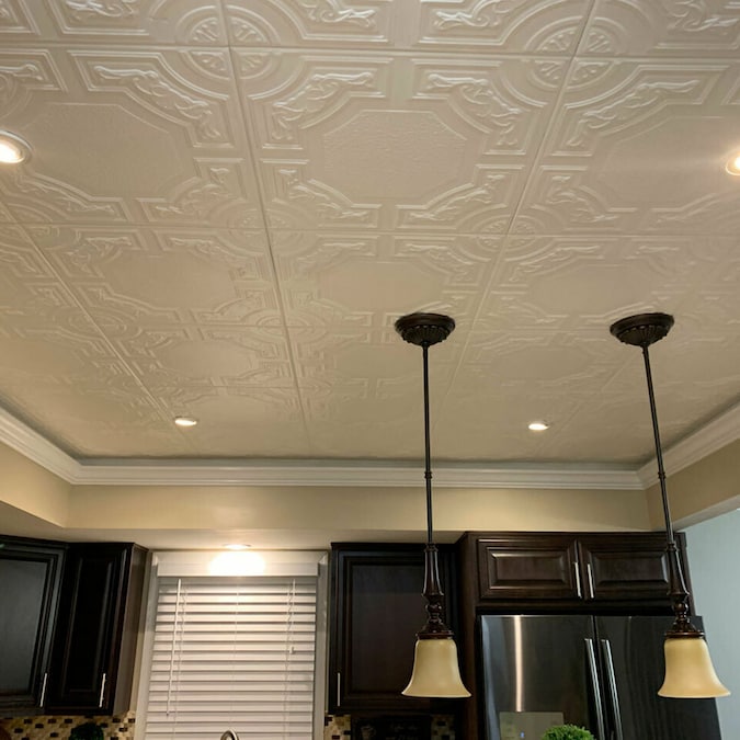 Elevate your ceiling with the Evergreen Plain White Polystyrene Surface-Mount Ceiling Tiles. These lightweight, easy-to-install tiles seamlessly cover existing surfaces and are an ideal choice for updating any residential space. With a subtle textured finish, they are perfect for adding elegance and charm.