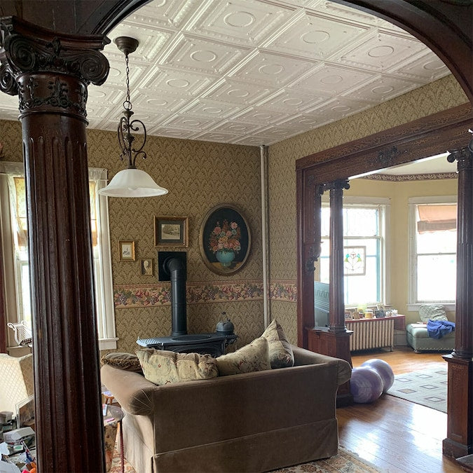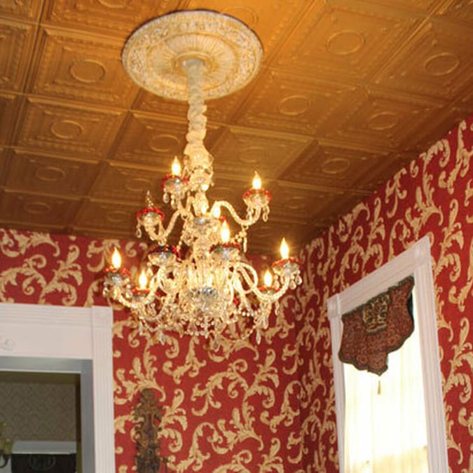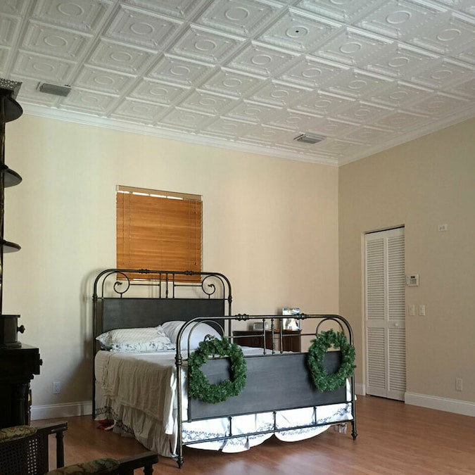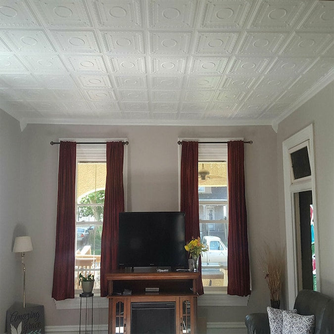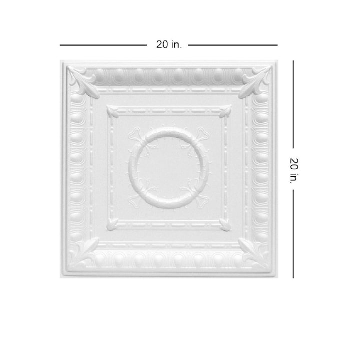 Elevate your space with the Romanesque Wreath ceiling tiles—a tribute to the enduring beauty of classic design. The intricate wreath pattern offers a stunning focal point, transforming any room into a sophisticated haven of tranquility. These tiles evoke a timeless elegance, perfect for creating a harmonious blend of luxury and comfort in dining areas or living rooms. Embrace the transformative allure of these ceiling tiles and let them guide your space to a realm of classic, yet contemporary, luxury.