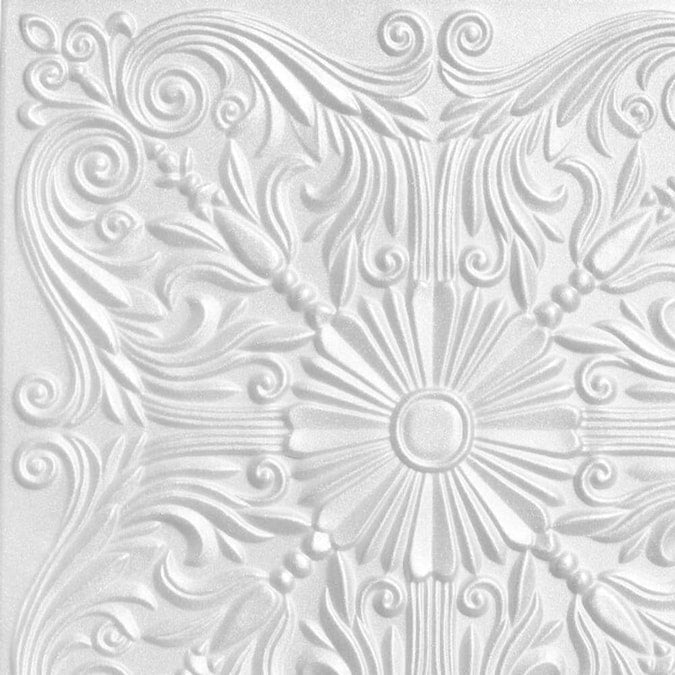 Transform your ceilings with ease using the Spanish Silver Polystyrene Surface-Mount Ceiling Tiles. These lightweight, easy-to-install tiles can be applied over popcorn ceilings and other surfaces, offering a seamless finish that can be customized with paint. Covering 21.6 square feet per pack, they're a versatile solution for residential spaces.