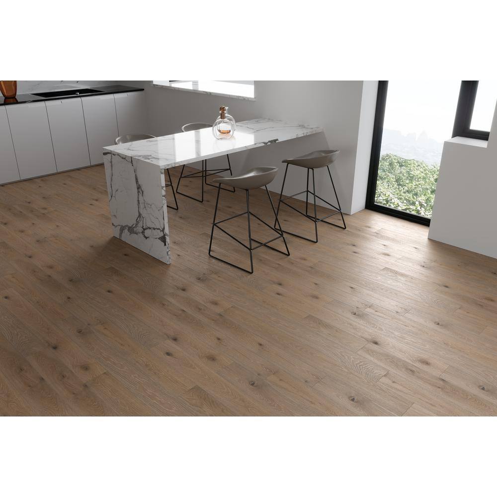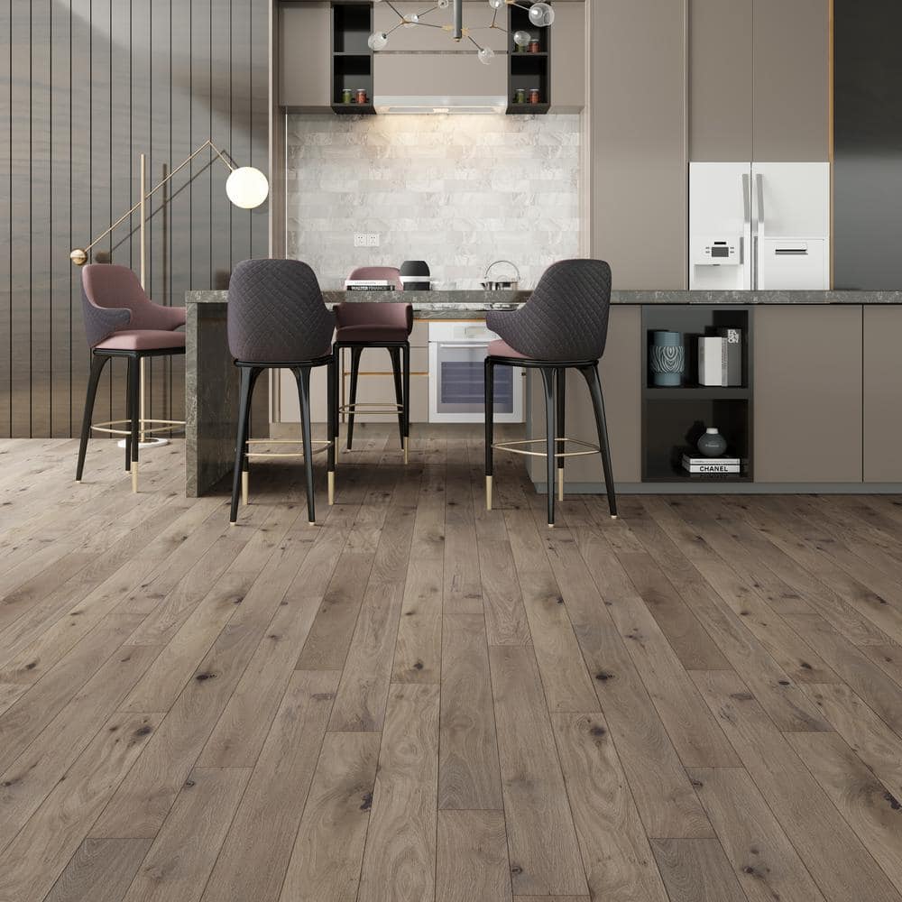 ACQUA FLOORS' Arlet Oak engineered hardwood imparts an elegant, rustic charm that warms any interior. The wire-brushed finish dances with subtle texture, inviting tactile sensation and aesthetic delight. Consider pairing this rich oak flooring with minimalist furniture to highlight its natural beauty, creating a harmonious blend of modern and classic design. This exquisite flooring underscores a luxurious lifestyle where quality and style coexist seamlessly.
