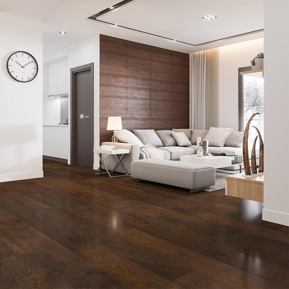The ACQUA FLOORS Eminent Axis flooring transforms any space into a luxurious retreat with its authentic white oak veneer, offering the charm of natural wood with modern resilience. The wire-brushed texture adds depth and character, making it a statement piece for any decor style. Let it be the foundation of a cozy, inviting living room or an elegant dining area. Embrace this engineered marvel as a cornerstone of sophisticated living, reflecting your impeccable taste.