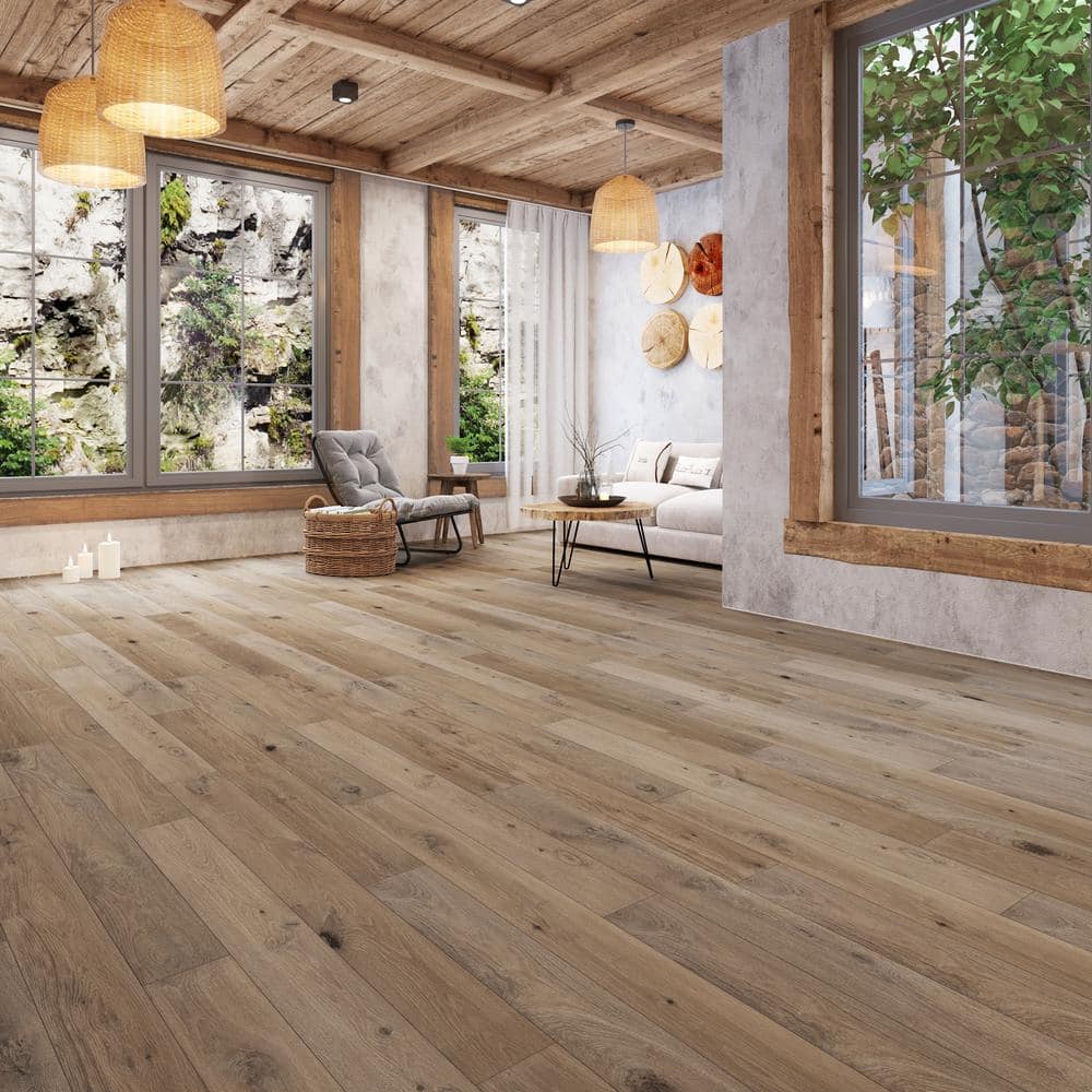 Picture stepping onto a seamless blend of nature and innovation with Geneva Oak flooring, a canvas for elegant living. The exquisite wire-brushed texture exudes a rustic yet modern charm, perfect for grounding any room in understated luxury. Pair it with soft wool rugs and minimalist furniture to highlight its rich tones. Essential for creating a serene and sophisticated atmosphere, Geneva Oak effortlessly complements and elevates any interior aesthetic.